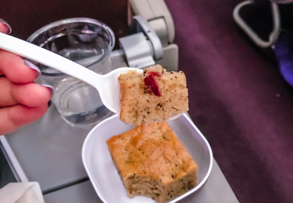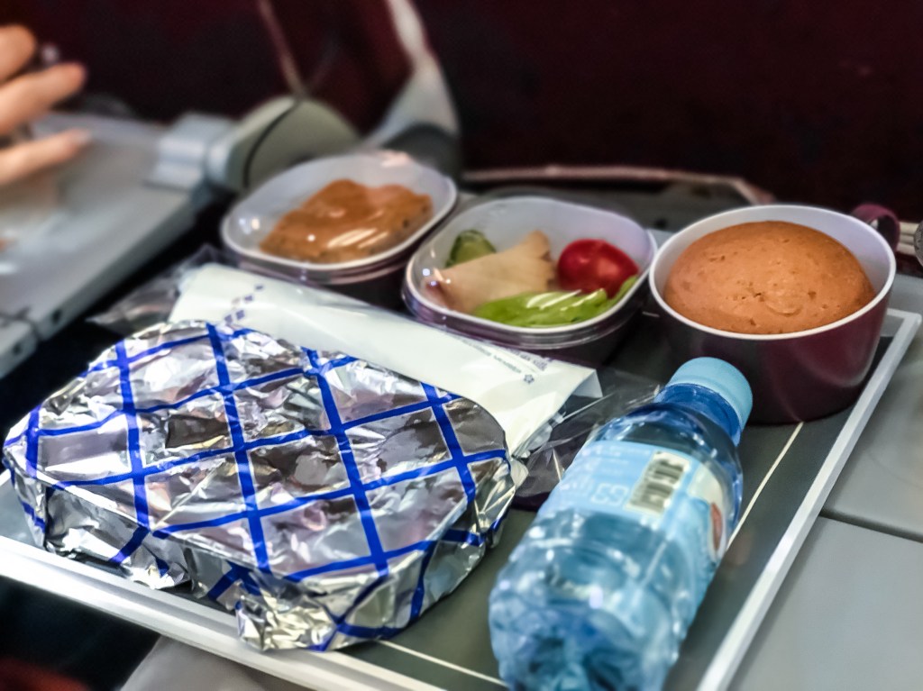 飛機平穩後,空服員們陸續準備機餐給提前線上點餐的泰航會員
