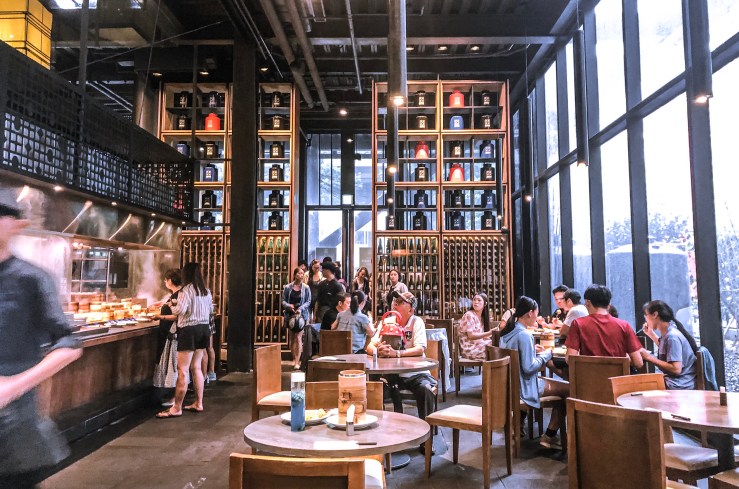 餐廳裡有一、二樓座位及取餐區,整個空間是挑高寬敞的設計