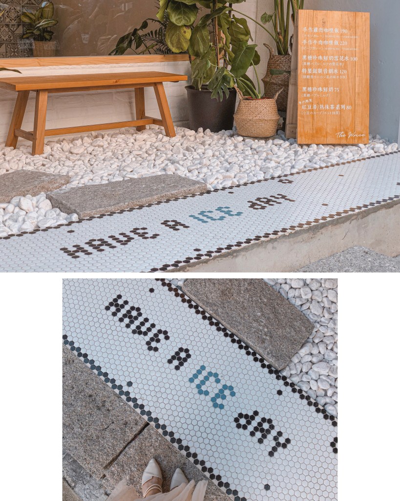 地板上的小細節也挺可愛的,仔細一看才發現他拼 HAVE A “ICE” DAY! 美好的一天也來碗沁涼的剉冰吧!