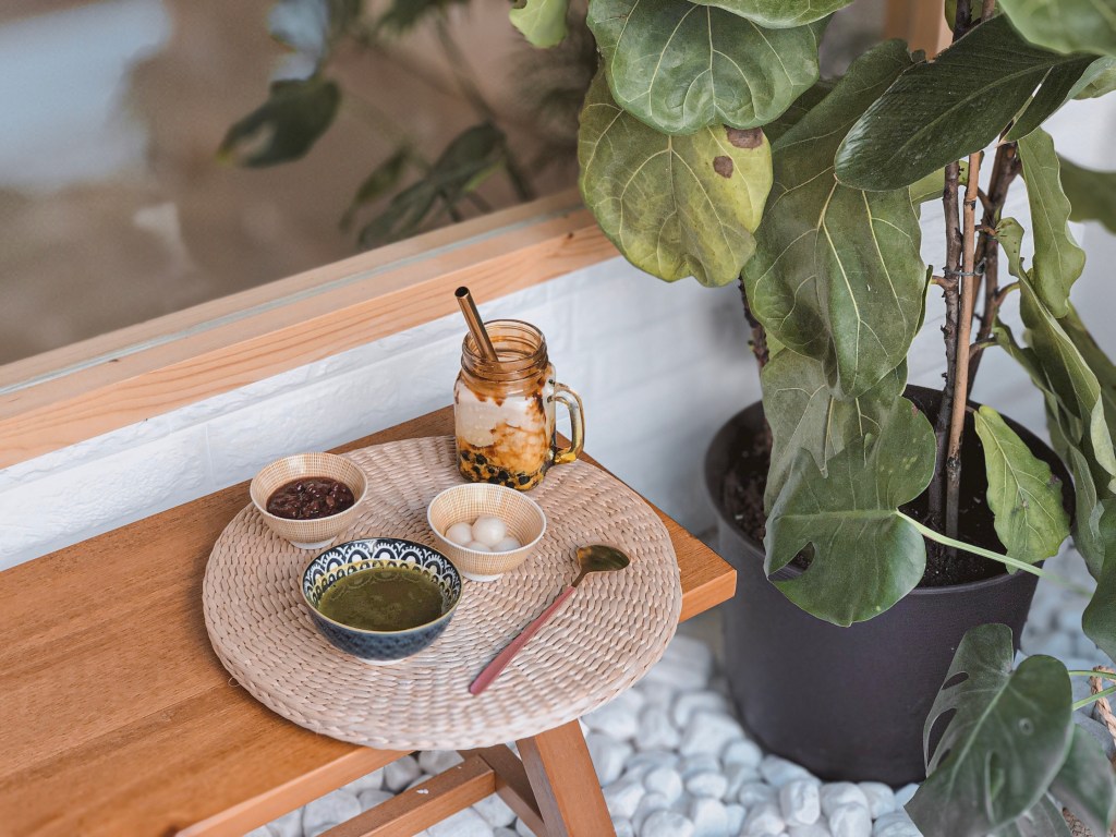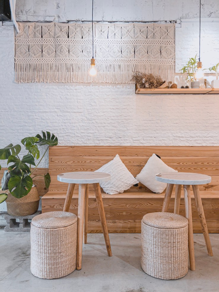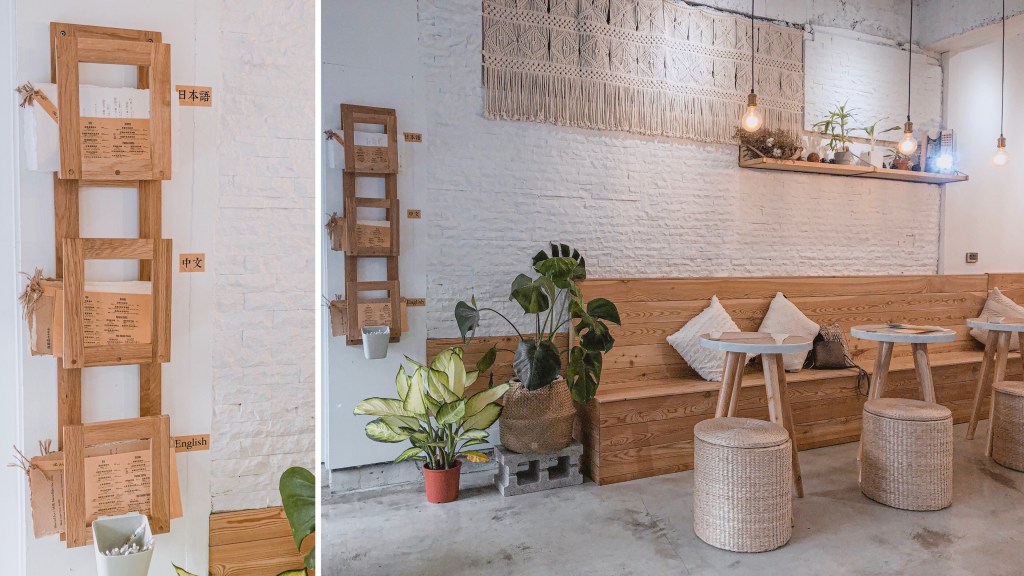 坐位區有分 小圓桌 和 高腳椅區,一個人用餐也不尷尬,可以選擇坐在高腳椅區。小圓桌精緻小巧適合和三五好友或好姐妹一起用餐,座位上有漂亮的圖騰靠墊。餐廳各個角落也有編織物或綠色植栽裝點,到處都很好拍~~