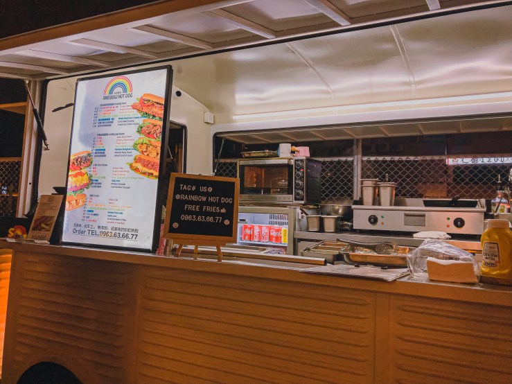 sansan本來剛結束上一個活動,要返家前往 國父紀念館站 的路上,就在對街看到 Rainbow Hot dog 的餐車,目光瞬間就被緊緊抓住了!鎖定目光在閃亮亮的浪漫餐車上,立刻折回去過馬路去一看究竟~(笑)