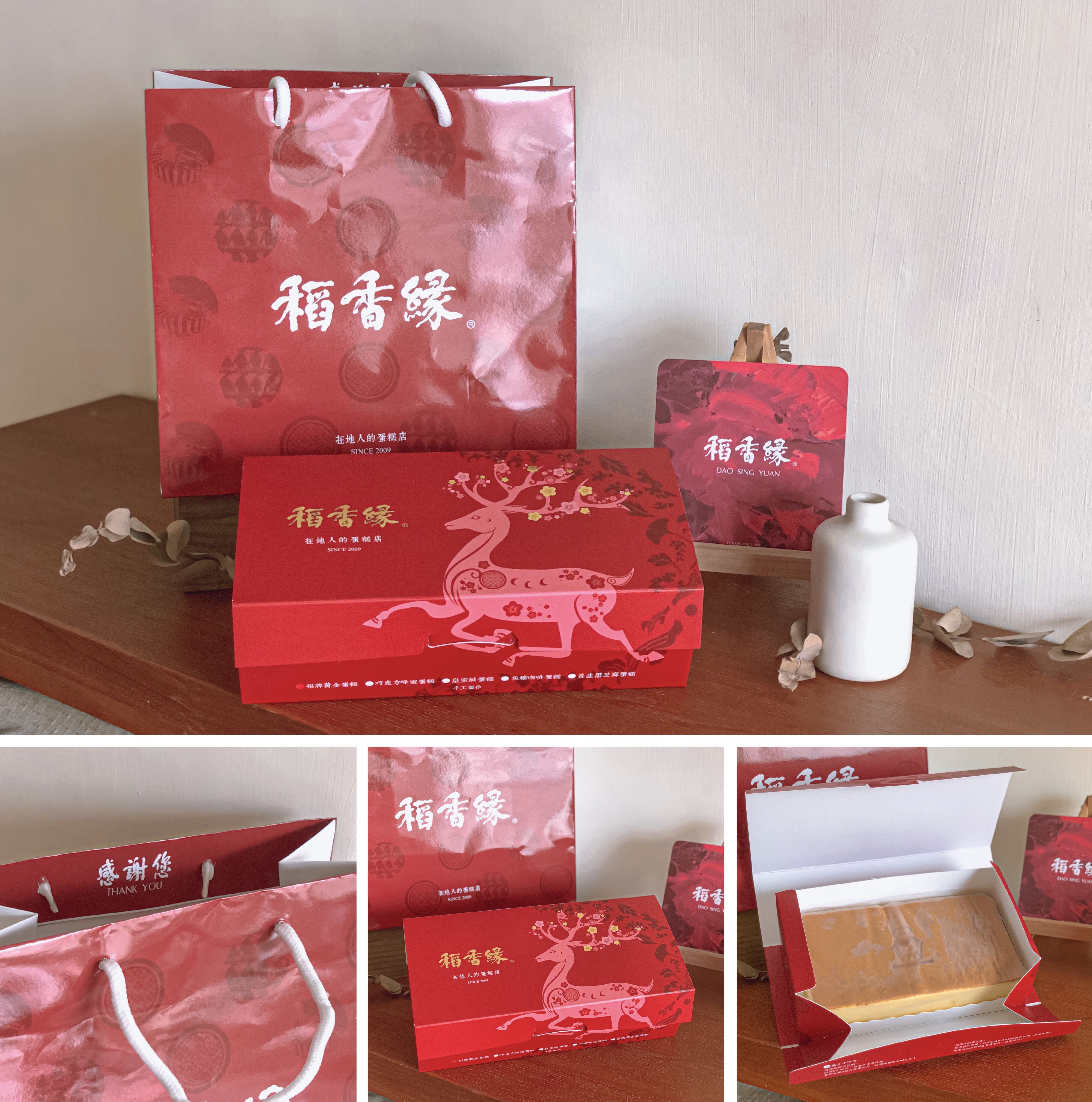 大紅色的紙袋與同色系燙金外盒,顯得喜氣洋洋~超適合當伴手禮送給家中長輩、親戚或佳節送禮給朋友。蛋糕盒有設計一個分離式的紙盤,可以輕鬆將蛋糕從盒中取出,切蛋糕的時候非常方便~
