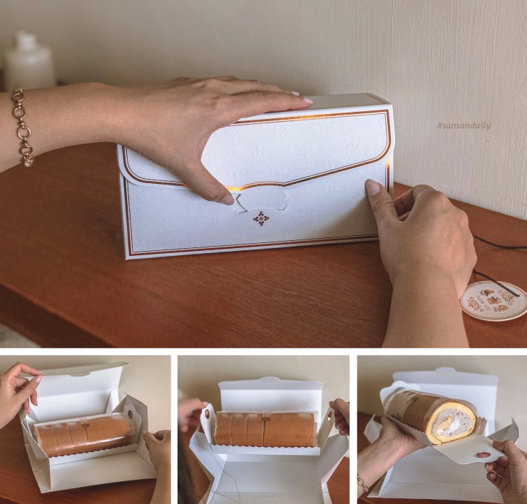 sansan真的超喜歡黃金芋泥捲的盒裝!仔細看這款外盒,典雅的壓花在白色的包裝盒上流露出淡淡的貴氣~一直叫朋友貼近看看這個超不平凡的盒裝,太有sense了!非常有古典英式下午茶使用的那種白色雕花瓷器的韻味在!