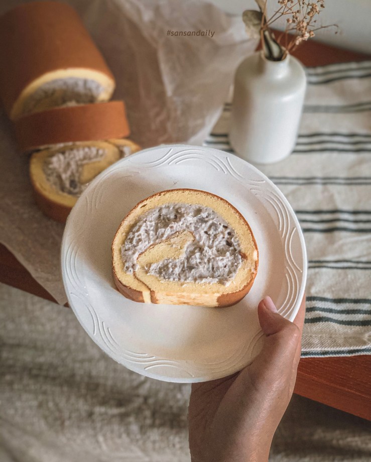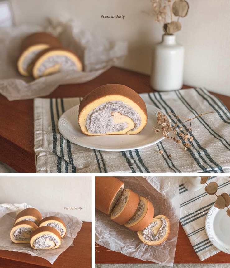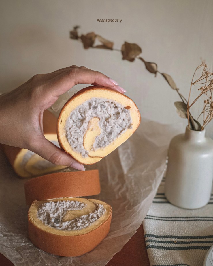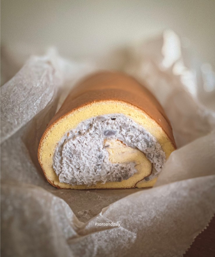 雖然芋泥裡拌入了大甲芋頭本人,但意外的讓不吃芋頭的sansan也非常好接受~獨家的比例讓芋頭香氣突出外,鮮奶油的滑順綜合了芋頭綿密、較乾的口感。蛋糕捲使用扎實、奶香十足的黃金蛋糕,厚薄度恰恰好!扎實與滑順在嘴裡交織出多層次卻溫順的饗宴,一條看似簡單的黃金芋泥捲,卻能帶來豐富的午後幸福時光~