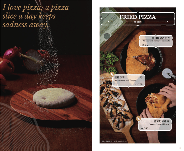 主餐其中一個sansan選了很喜歡的披薩!但這個更特別唷~是炸披薩!蕃茄起司雞肉炸披薩 使用傳統的拿坡里披薩經過高溫油炸烹調,切面就可以看到滿滿的內餡,爆餡的模樣口水都要流下來了~一口咬下,牽絲的起司帶有鹹香,每口都吃得到鮮新番茄、雞肉、洋蔥與披薩醬,sansan覺得最經典的是裡面放了香氣十足的九層塔!!讓炸披薩完全不會膩口唷!披薩皮的厚薄適中,是越嚼越香的手工麵皮~這道炸披薩非常適合小朋友呢!