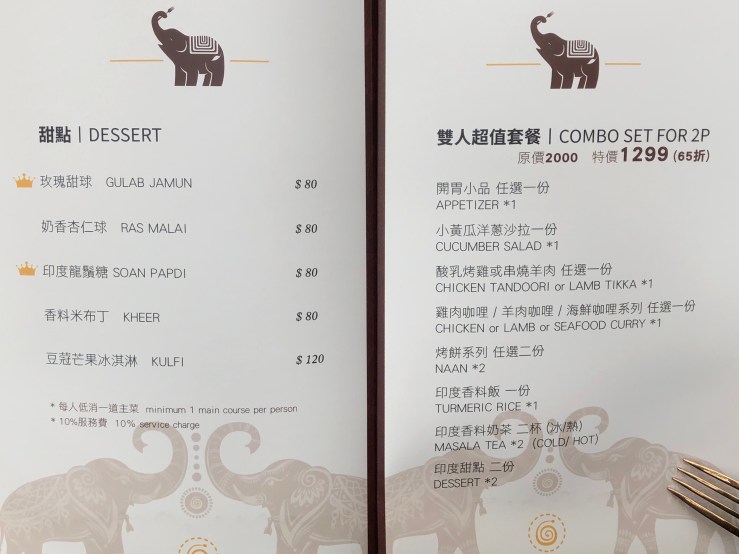 sansan和男友兩個人選擇了超划算的【雙人超值套餐】。從開胃小品、沙拉到印度爐燒烤、咖哩以及最後的飲品及甜點,【雙人超值套餐】可以完整的吃到各種樣式變化多端的印度菜,並且附上兩杯飲品,絕對不可以錯過最道地的印度香料奶茶唷!除了幫助懶人直接配好餐點外,套餐的價格也相對便宜許多!推薦兩人前往時不要錯過囉~~