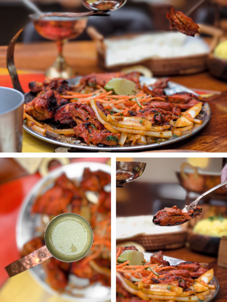 印度名菜之一 酸乳烤雞,以香料和優格醃漬雞肉,再塗上獨門燒烤汁後進入爐烤。烤汁略帶辛辣在搭配上表皮上爐烤的焦香,令人胃口大開~對雞肉料理情有獨鍾的sansan非常期待這道印度爐烤雞肉!