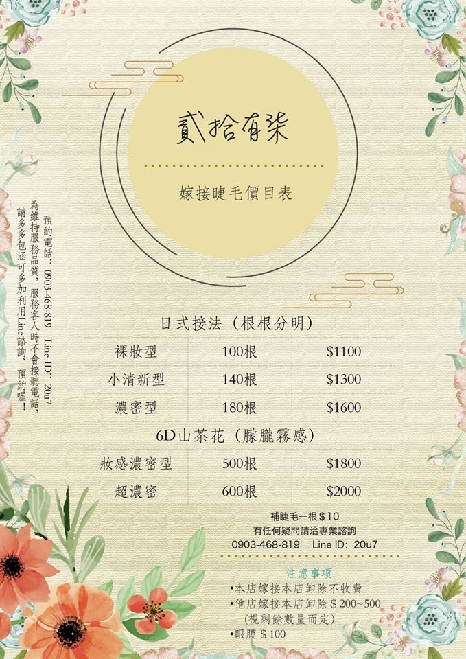 ▲ 貳拾有柒 工作室不只接睫毛唷!還有其他服務:臉部保養、臉部撥筋、卸除睫毛、熱蠟除毛、紋繡、修眉
