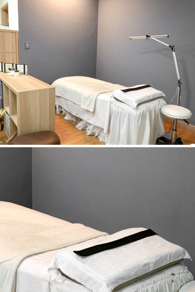 ▲ 注重環境衛生的闆娘說,不是因為疫情所以才要求客人洗手消毒唷!當了9年的美容師,也養成了消毒的習慣與堅持,每批客人結束後都會將床及器材做定期消毒唷!