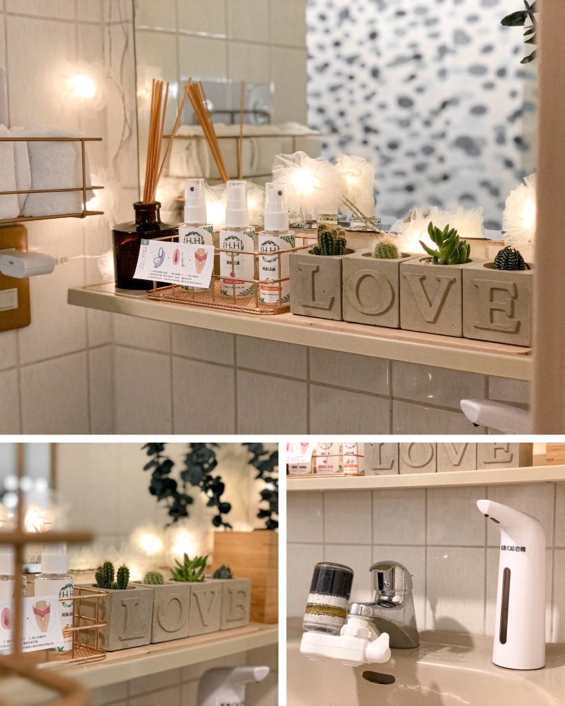 ▲ 廁所也佈置的很溫馨~進到工作室不到3分鐘就能感受到闆娘滿滿的用心,初次接睫的緊張情緒都消失了,內心完全放心交給闆娘了呢!
