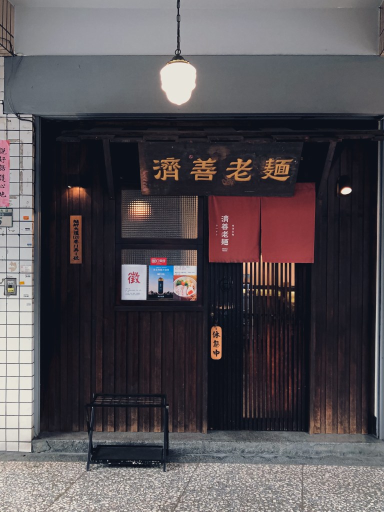 濟善老麵 主打淡麗系雞湯拉麵,將店面設在台北城文化發源地的萬華區艋舺大道上,延續在地文化透過美食結合出屬於台灣的記憶,打造一個會說故事的『台式拉麵』