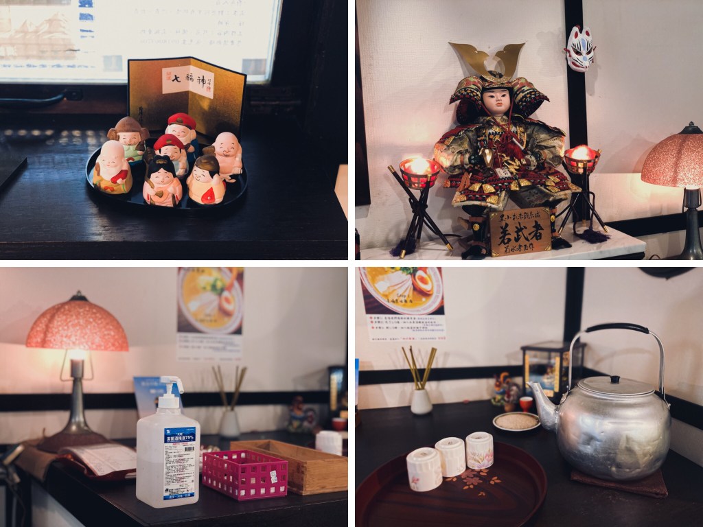 店內陳列許多可愛的公仔、日式娃娃等收藏品,牆面上掛著迷你面具非常可愛!