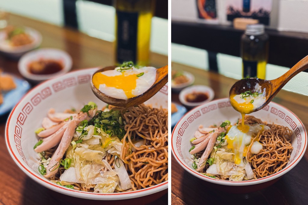 戳破並拌入溫泉蛋讓麻辣中多了蛋的甜味,不敢吃辣的朋友也可以嘗試唷!