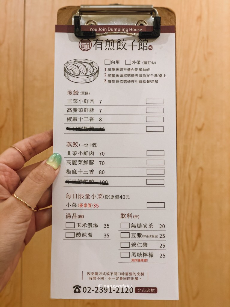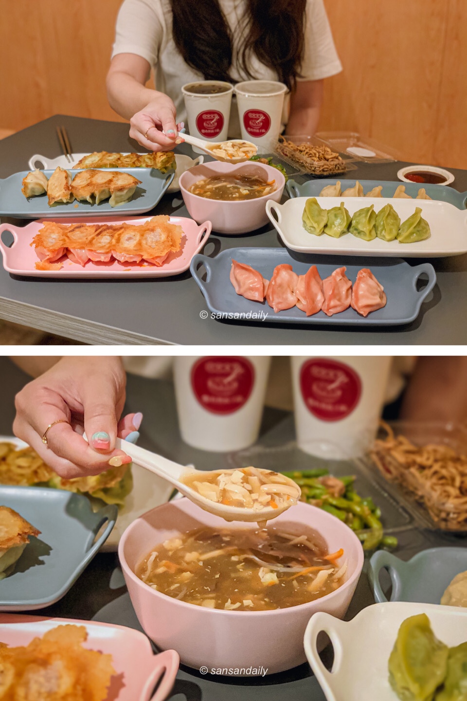 sansan是玉米濃湯派!!不過很桑心的是有煎餃子館的湯品也超熱門!我們7點抵達時玉米濃湯已經售罄,酸辣湯也快賣完了,二話不說趕快點一碗!