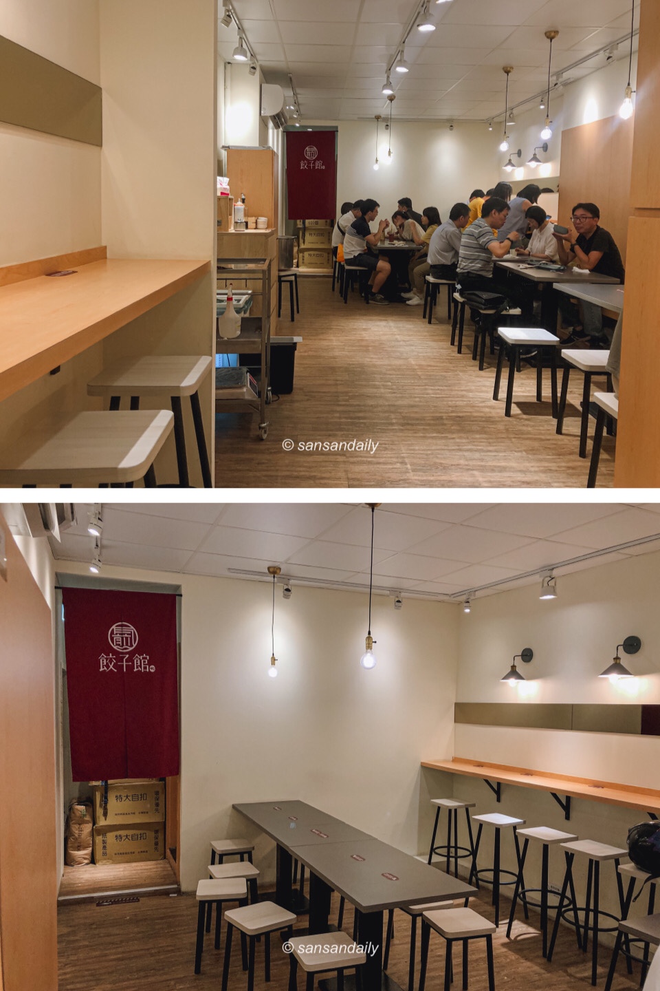 內用有分為多人桌和單人高腳椅區,大量運用木頭色系的裝潢,帶有日系的溫暖!吃個餃子也可以很文青!