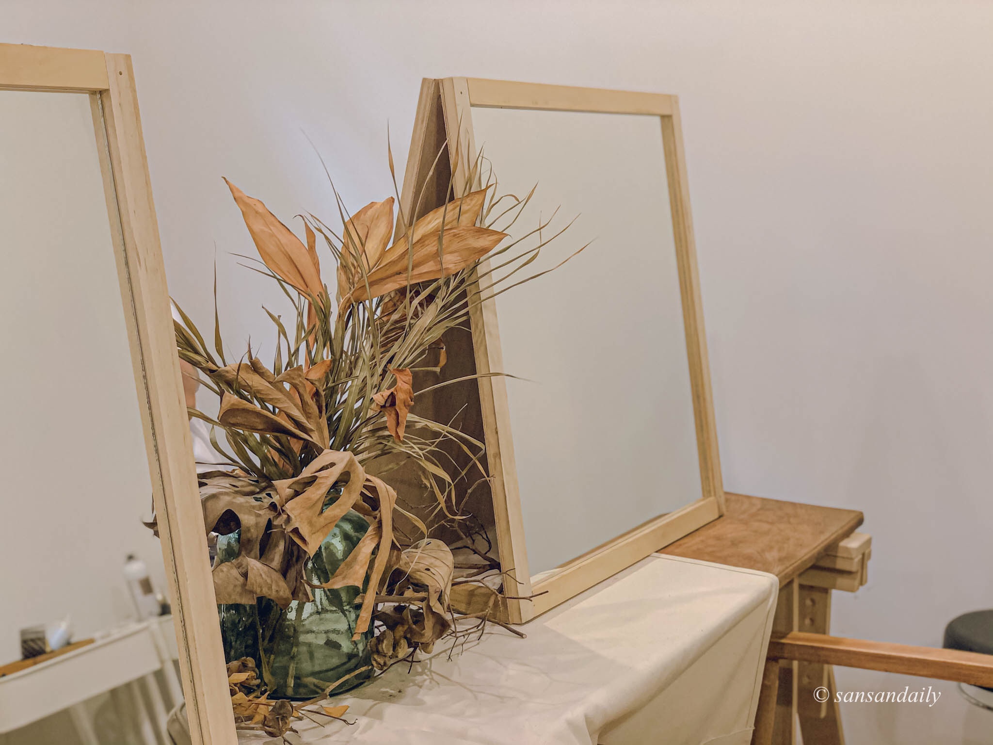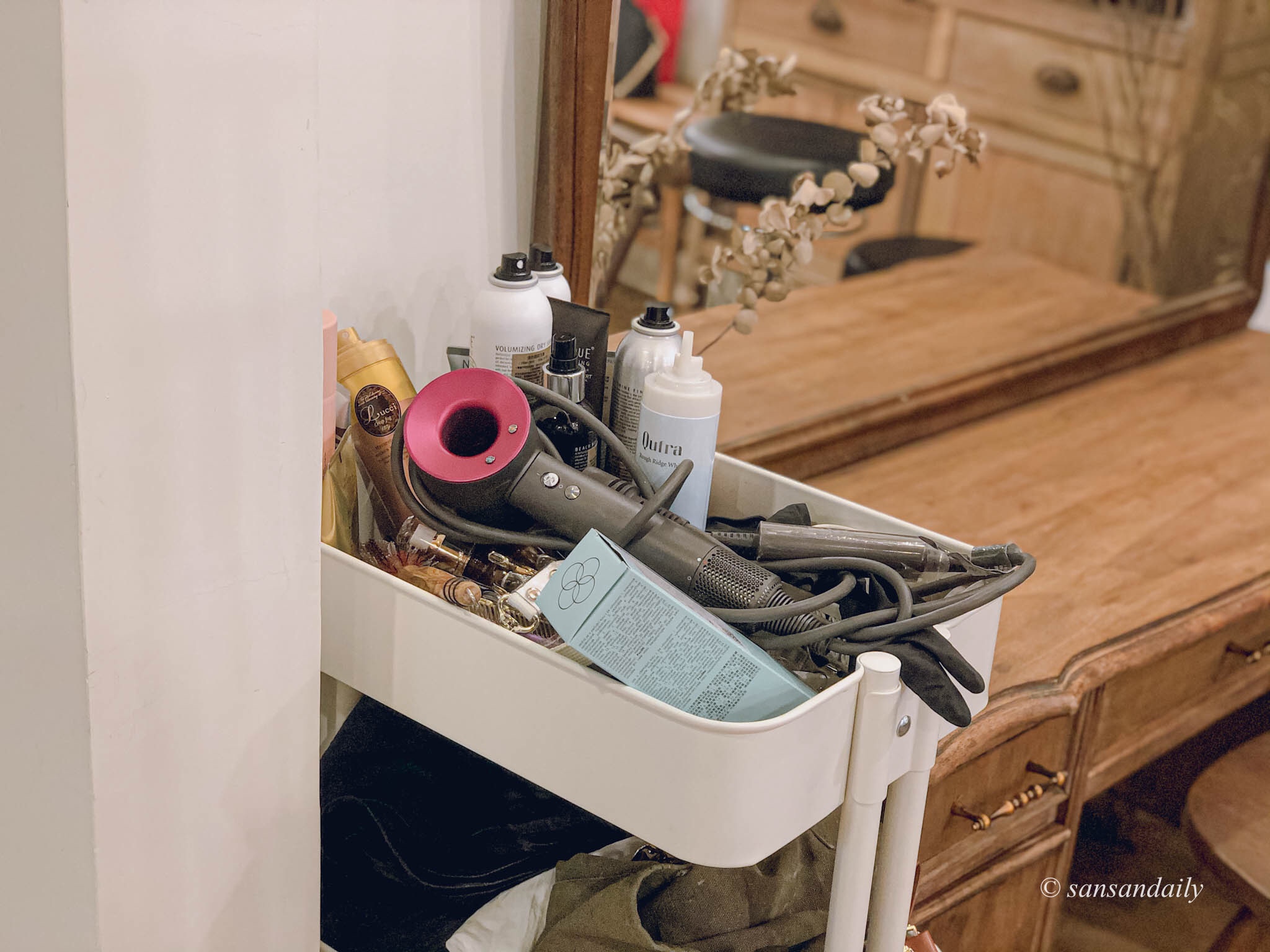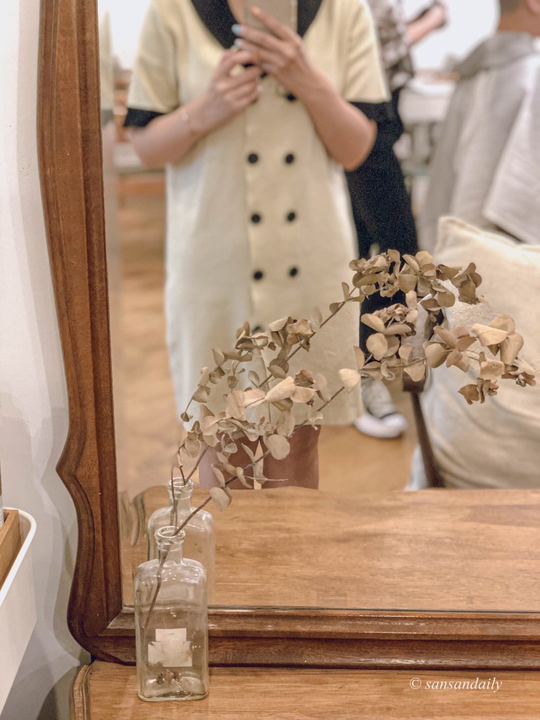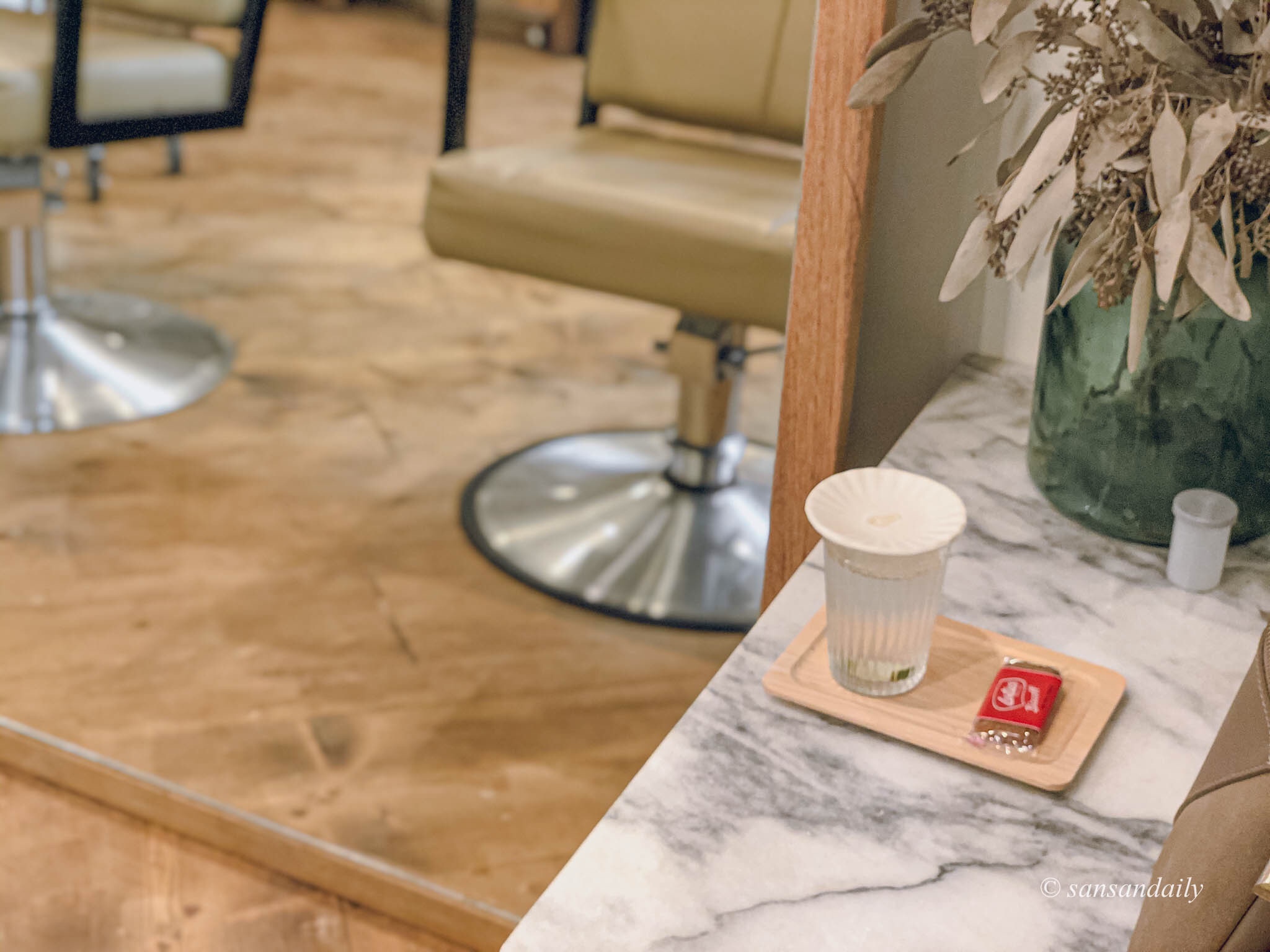 這個位子超美!!好希望家裡的梳妝台也長這樣唷~每天都對著鏡子美美的梳頭(笑)想像一下你坐在這裡給設計師用頭髮,是不是頓時有種高級感!好像自己是歐洲莊園裡的貴婦~邊喝著早茶邊準備著一整天美美的造型