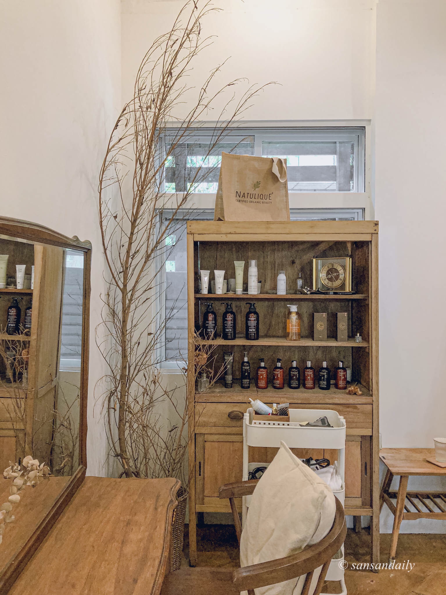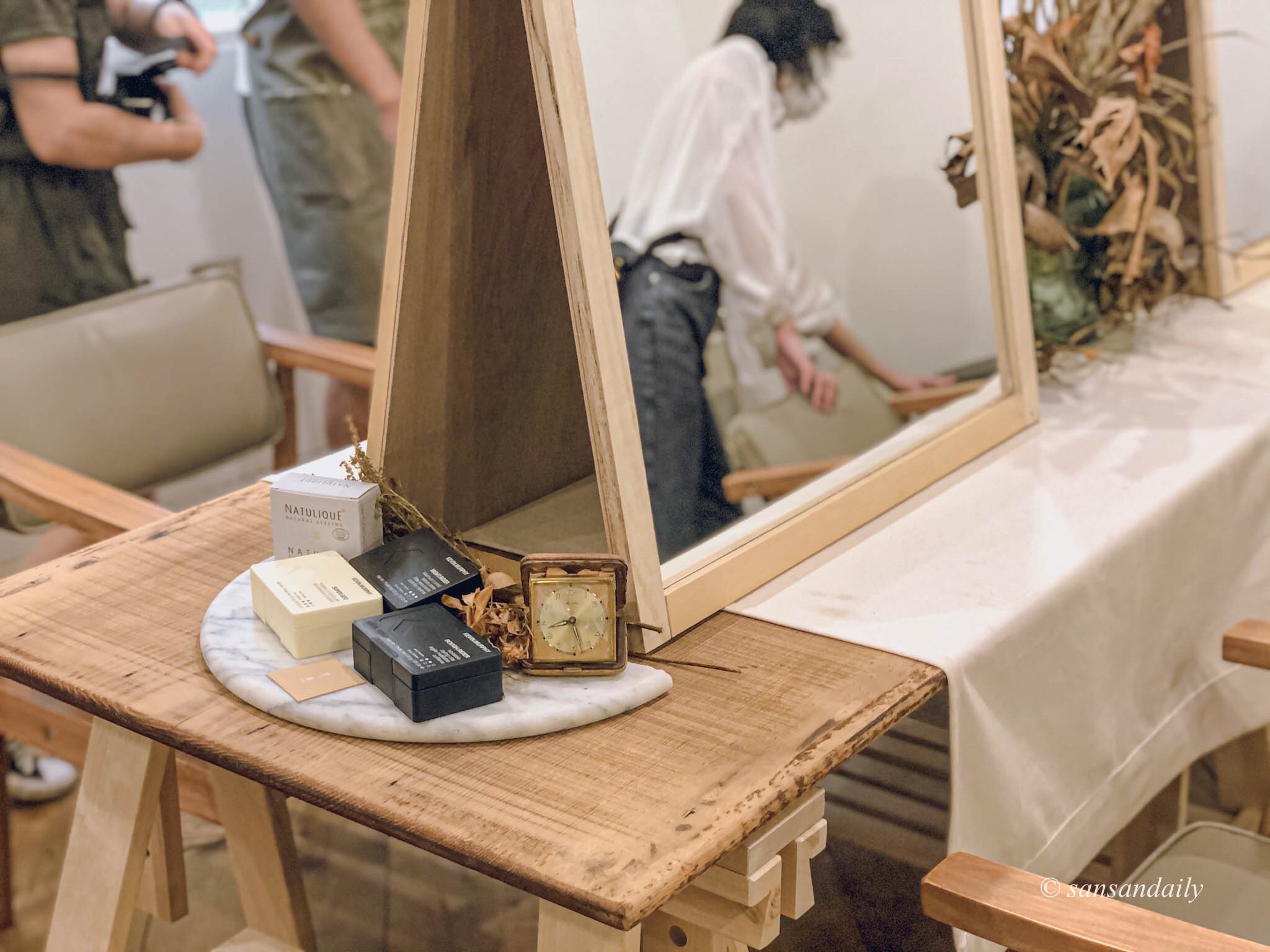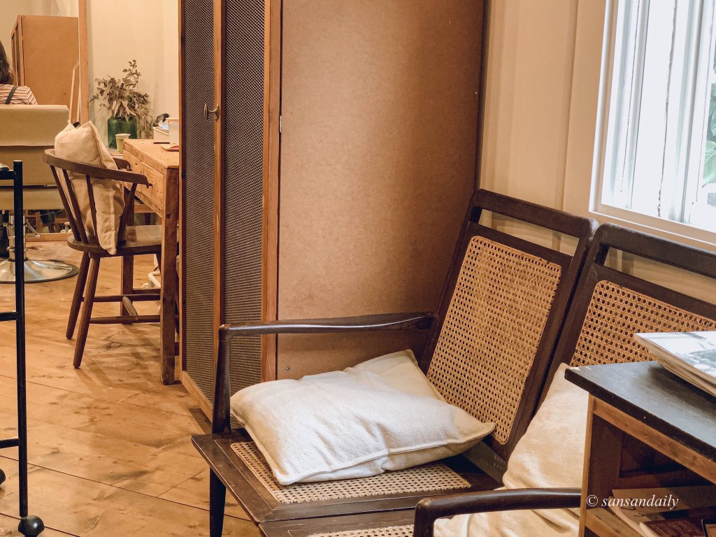 每個角落都不會落掉,精緻的小物件實在太美!拼拼湊湊的木桌子和木質調的鏡子、椅子,展現出別樣的古樸韻味!實在是很不一般!非常的不一般~~在提醒你一下這是台北的髮廊唷!!