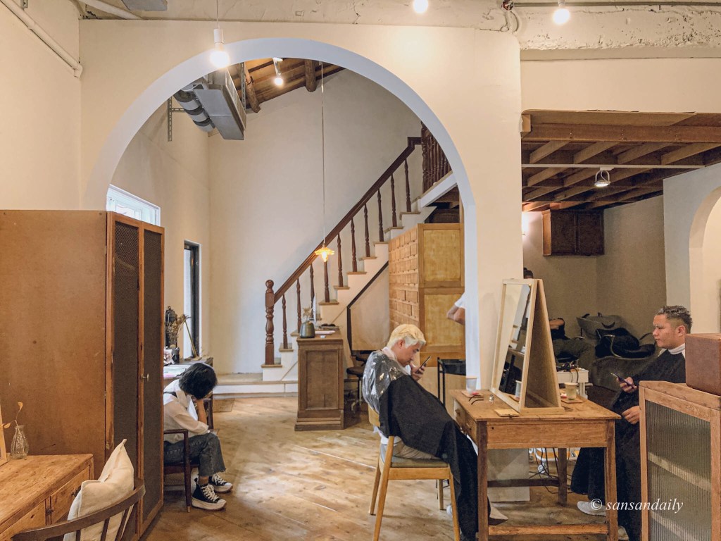 日青髮廊 應該是我目前看過最美的髮廊!絕對是披著韓系咖啡廳風格的髮廊代表~離捷運士林站2號出口也相當近~而且!「日青髮廊」的鄰居就是張孝全和鳳小岳合開的「榕RON」酒吧!小小的巷弄因為這兩間充滿藝術感的特色店家變得格外引人注目呢!