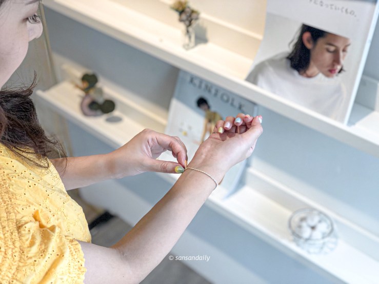 sansan的大學生涯中,一直和飾品沾不上邊,設計系光鮮亮麗的外表下,時不時的進出木工廠、製作模型、噴漆、通宵到早上洗個戰鬥澡提著作品衝去教室評圖,除了擔心製作過程中弄傷了飾品或反倒被飾品嗑到外,絕大部分時間都傾注在設計及行銷的相關知識學習,飾品配戴一直都不在必做或想做的list上。出社會後,從雲林回到台北,終於開始投資一點心思和金錢在妝點自己!