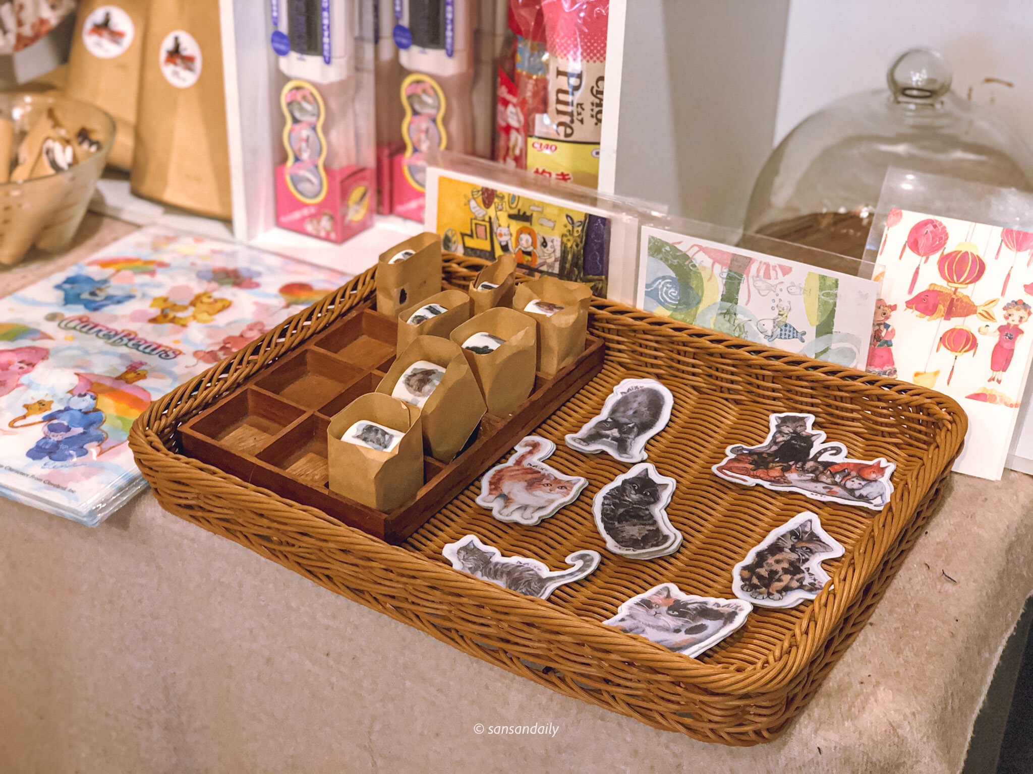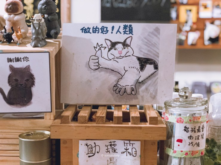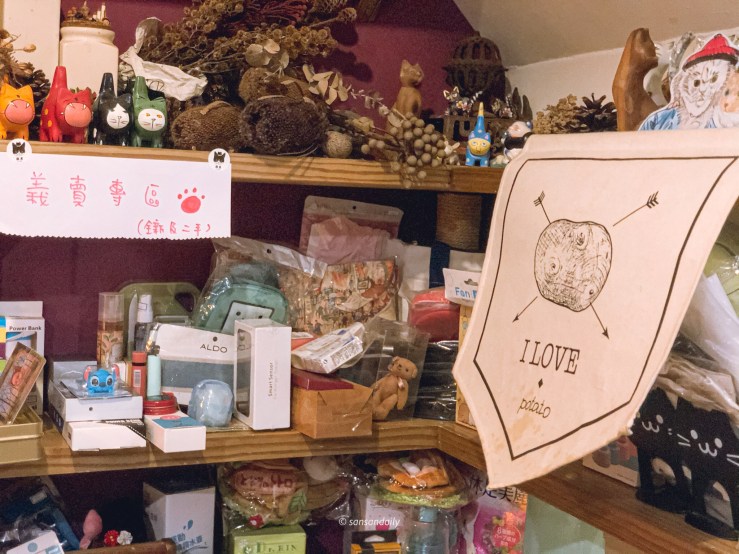 一樓有一個角落規劃成商品義賣區,用來增加照顧浪貓的基金!