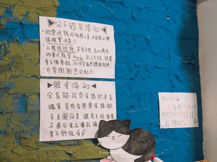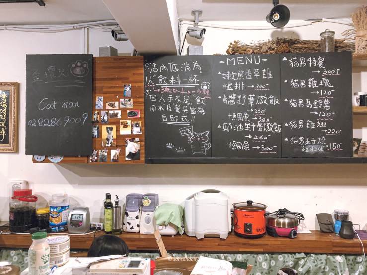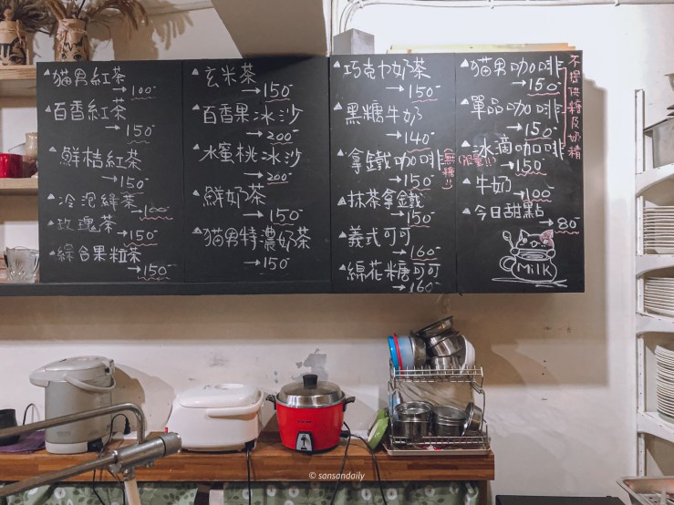 貓男的一樓為用餐區,黑板上有手寫菜單,低消是一人一杯飲料!只要一杯飲料就可以不限時瘋狂吸貓,是不是相當划算!