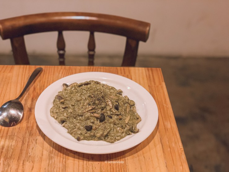 我絕對不會說,這盤青醬菇菇燉飯的賣像實在有像貓飼料,至於味道的部分,大家不用太期待拉~反正到貓男是來嚕貓咪的不是嘛!