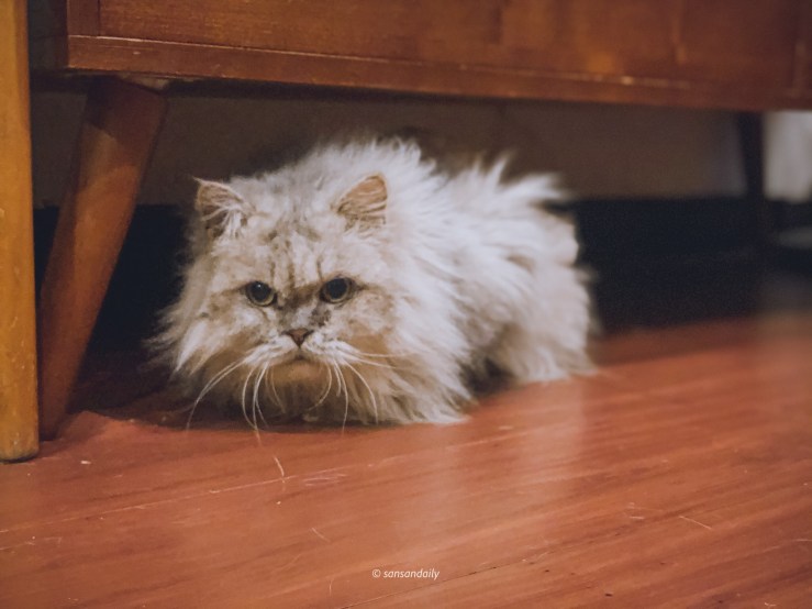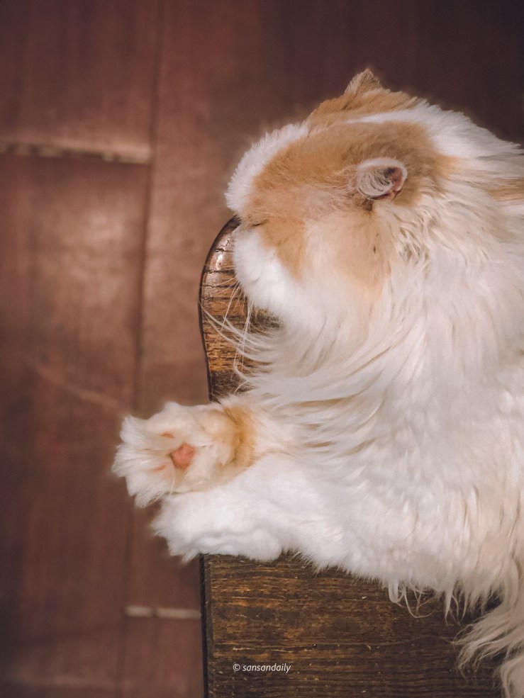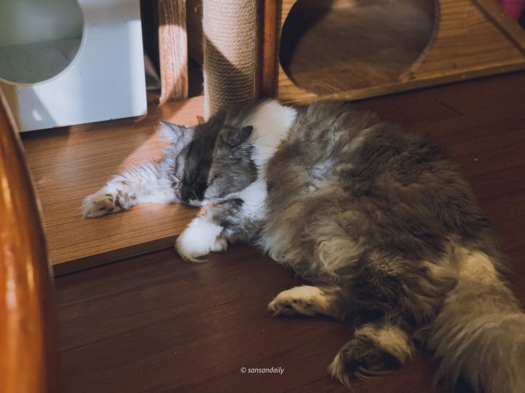 這隻長毛喵咪真的太像麻豆了,專業的眼神充滿靈魂!讓sansan忍不住一直拍她的各種姿態(錯!她從頭到尾都躺著不動…)