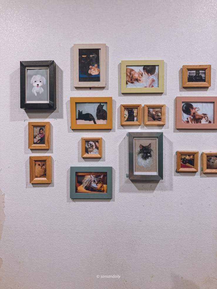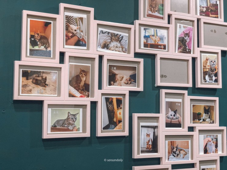 整面牆上掛著的都是貓男收留的中途貓咪!