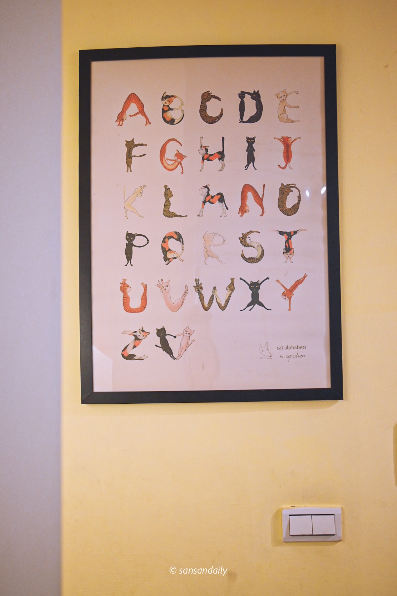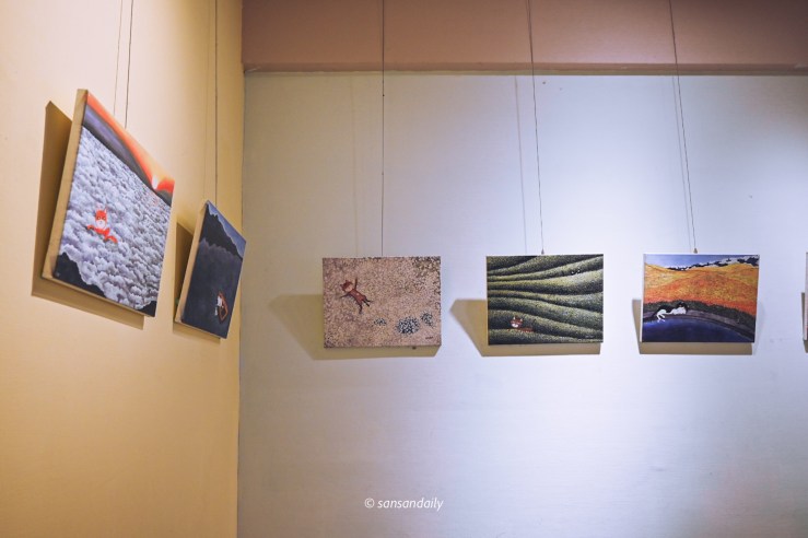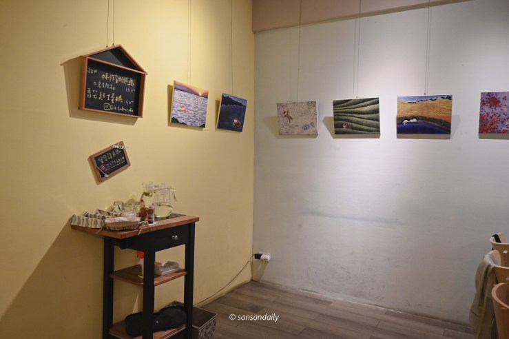 穿過一整排貓咪字母的畫廊,地下室的空間展示許多台灣藝術家畫作。