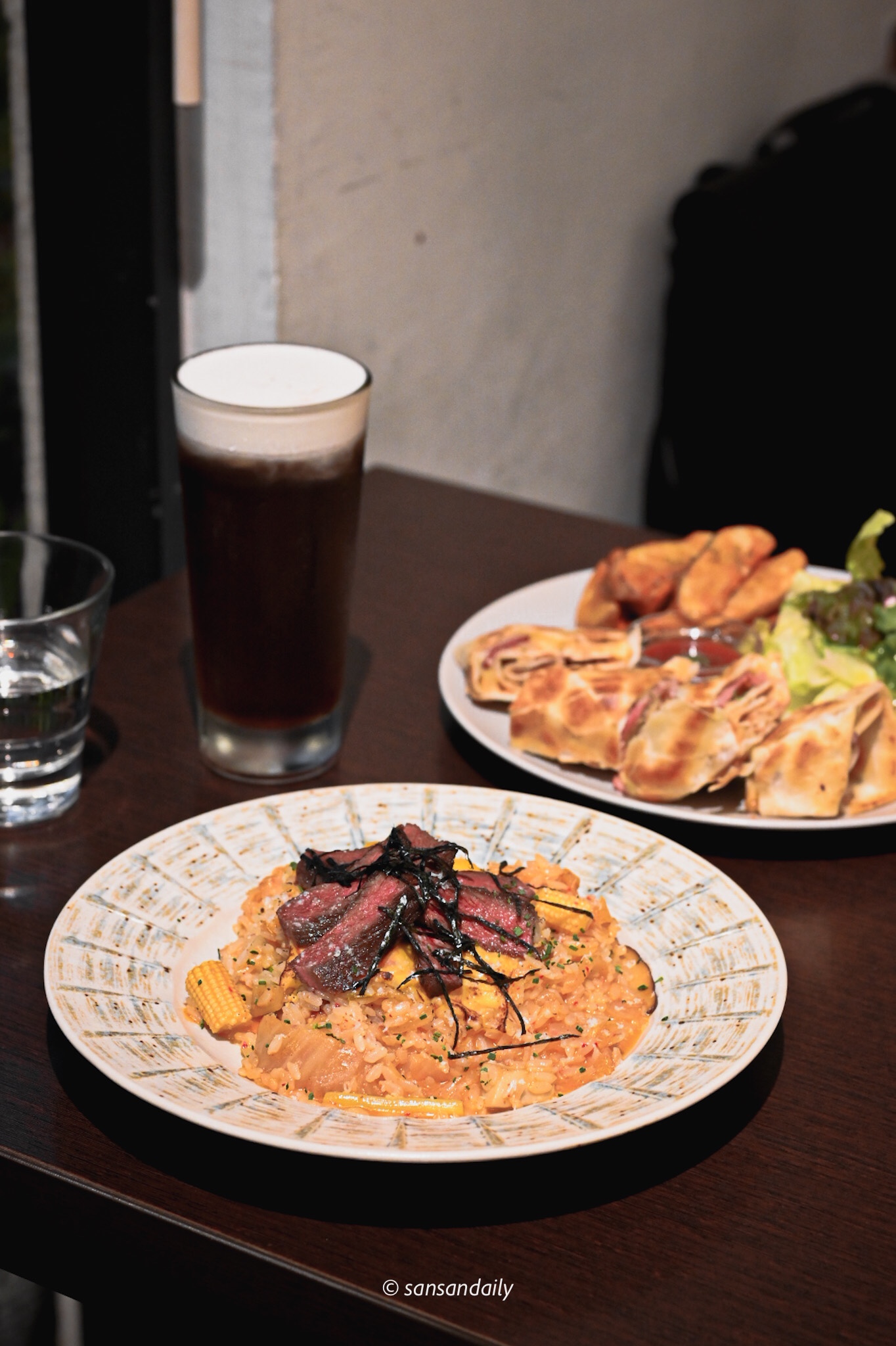 點完餐點後和朋友聊到她在韓國的生活,一盤「歐巴泡菜豚肉起司燉飯」就開起我們半小時的韓國話題,從飲食到服裝、從學校生活到戀愛觀等等。每次見面都有聊不完的話題,可以隨意暢聊的感覺特別舒壓,很享受這種與好友相約的假日安排。
