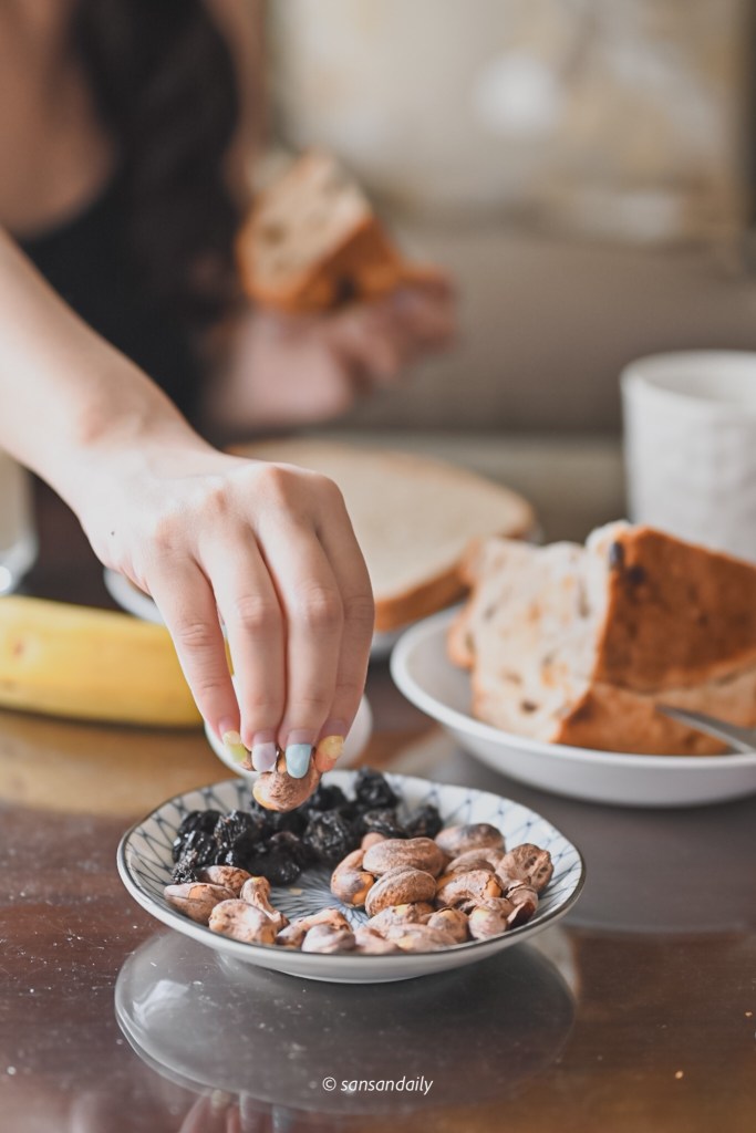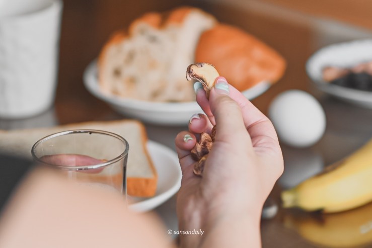 開箱後隔天早上很興奮的拿出來配早餐,熱愛腰果的sansan真的可以餐餐配腰果耶!