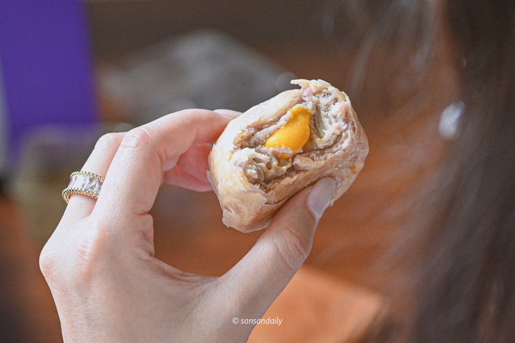 芋頭香甜綿密包覆著濃郁的流心內餡鹹香,