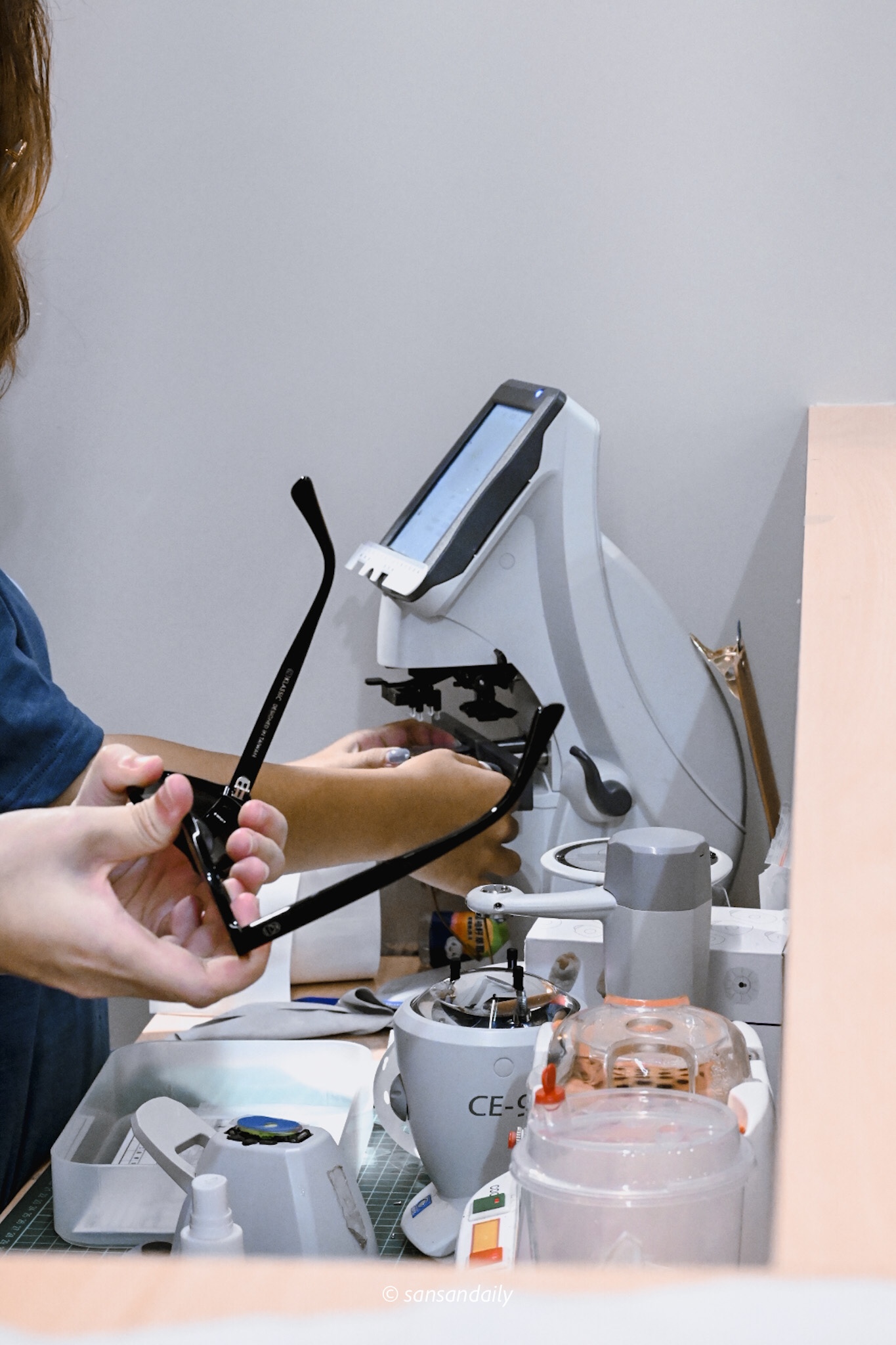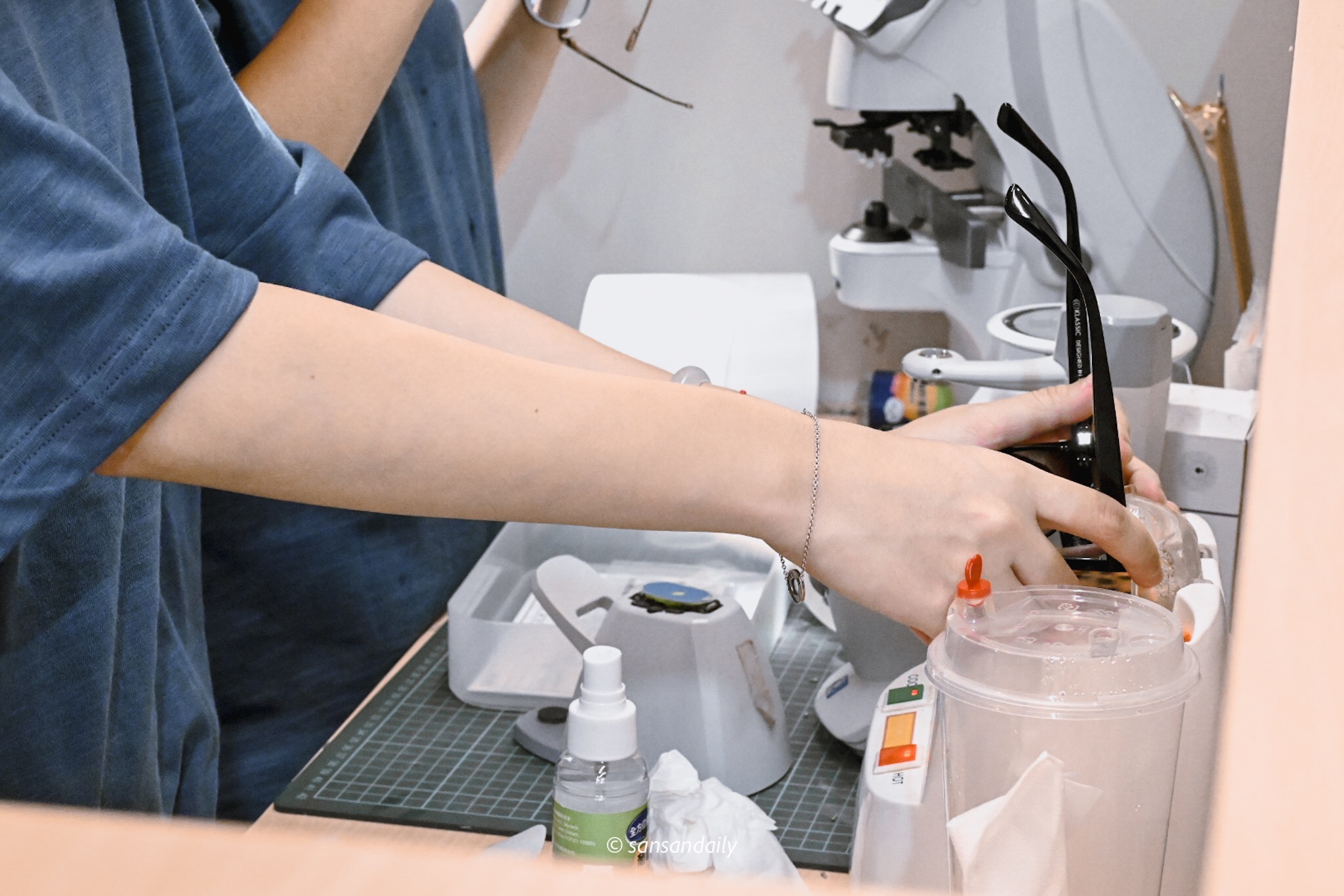 因為我的高低耳,現場請技師幫我調整一下,讓眼鏡不會歪歪的。高低耳也是我之前戴眼鏡拍照時發現的,拿去眼鏡行問說我眼鏡歪歪想調整,原來是我高低耳的關係。