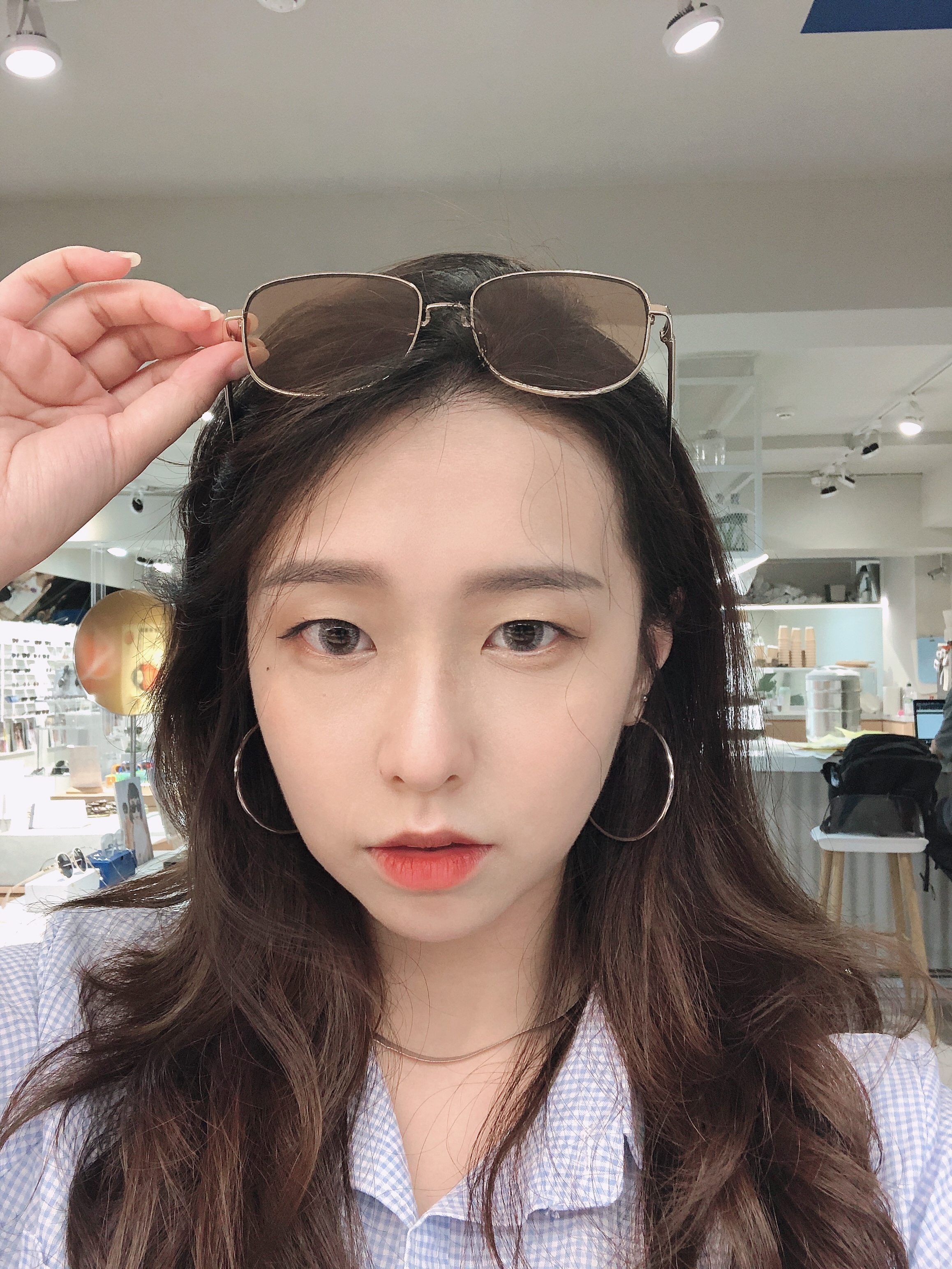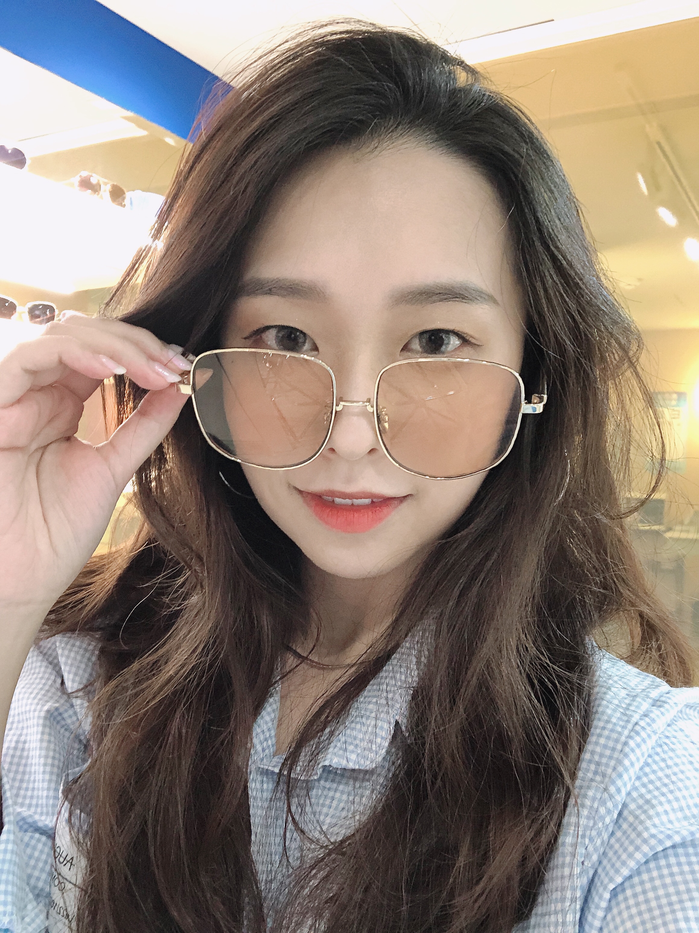 如果想找一副優雅時尚的,我覺得戴到這款細框就很符合,細緻的金屬光襯托出五官的精緻,茶色大鏡面除了顯白更顯小臉。