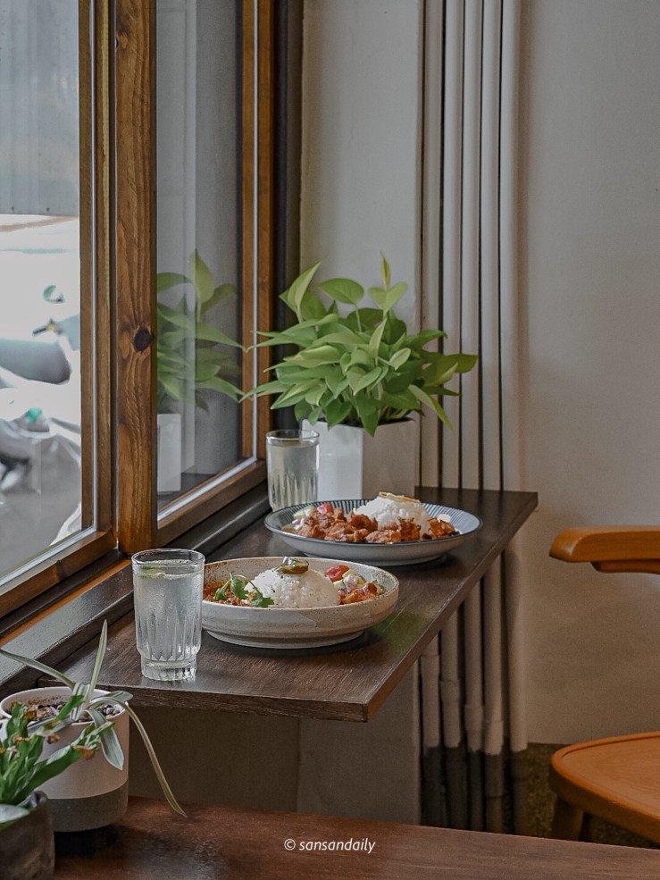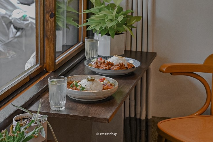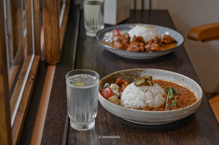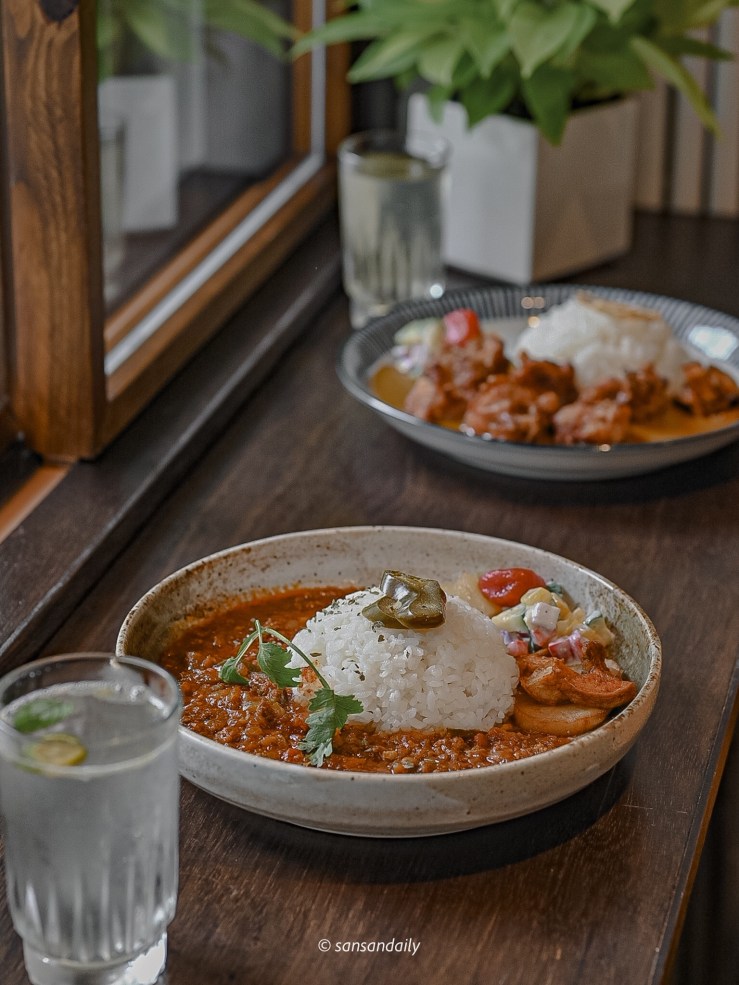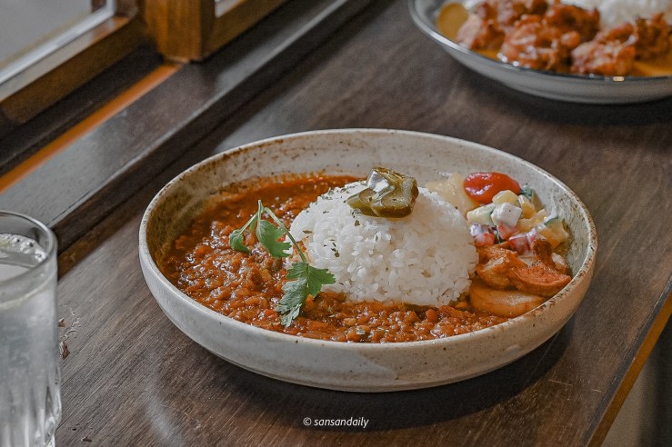之前是咖啡師的老闆娘,說起香氣整個人炯炯有神,完全能感受到這間店的靈魂人物,絕非那種美美的網美店而已,也更加讓我期待他們的餐點!目前的菜單有「炸雞咖哩」和「墨西哥肉醬」,每三公休後的周四就會有新的配方誕生,也就是說,每周去都能吃到不同風味的料理。