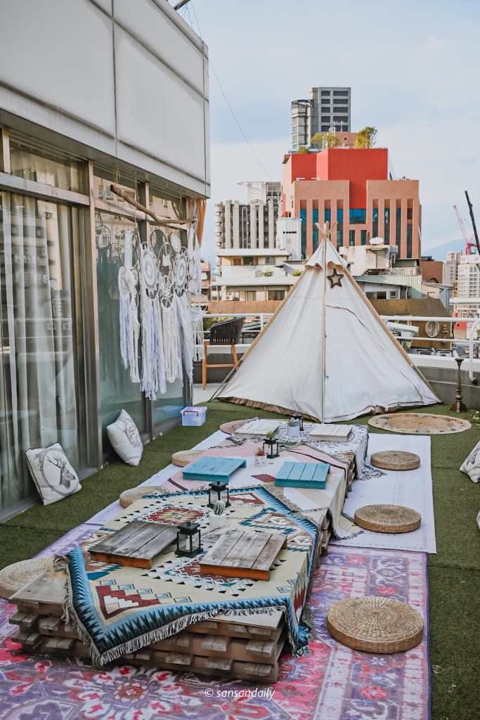 頂樓戶外的布置用心、風格鮮明,小鹿文娛的團隊就是用這種認真、創新,事事都不馬虎、盡善盡美的精神,擄獲住客的心吧。