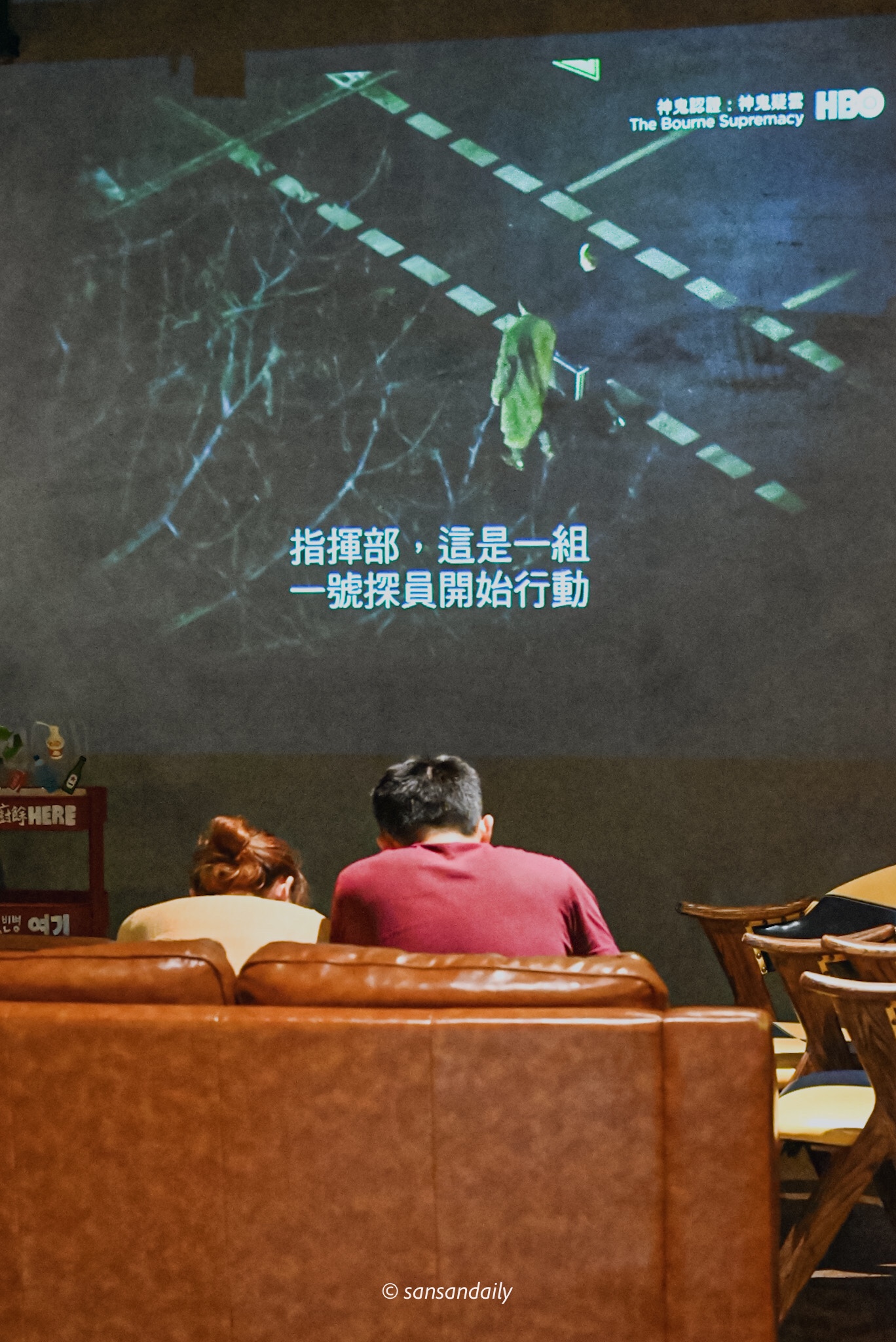 晚上閒來無事,悠閒地晃到B1交誼廳,已有許多住客在交誼廳活動,有的窩在沙發上看著大螢幕投影的HBO電影,有的玩飛鏢、投籃或是安靜辦公,諾大的空間悠閒舒適。