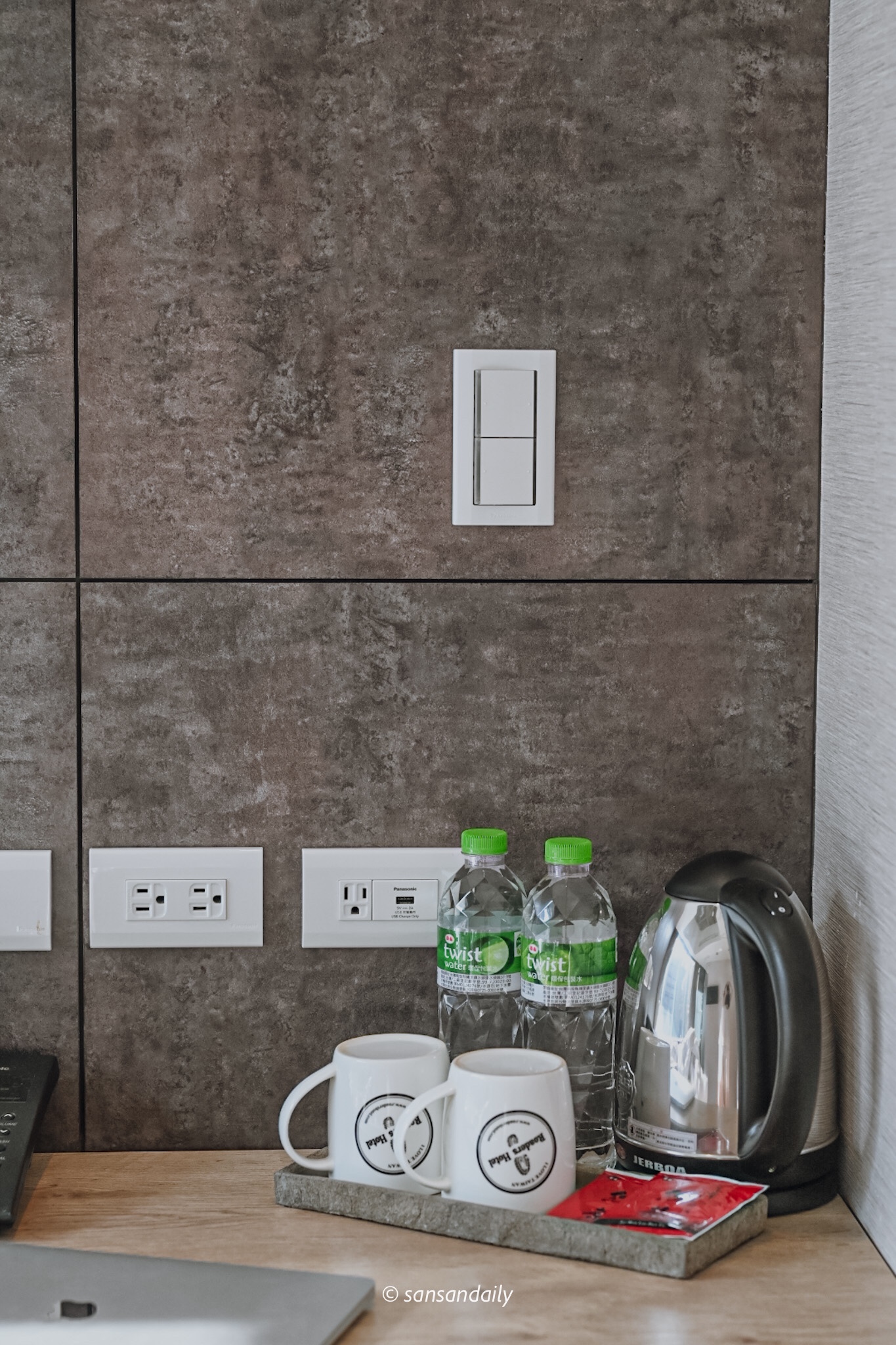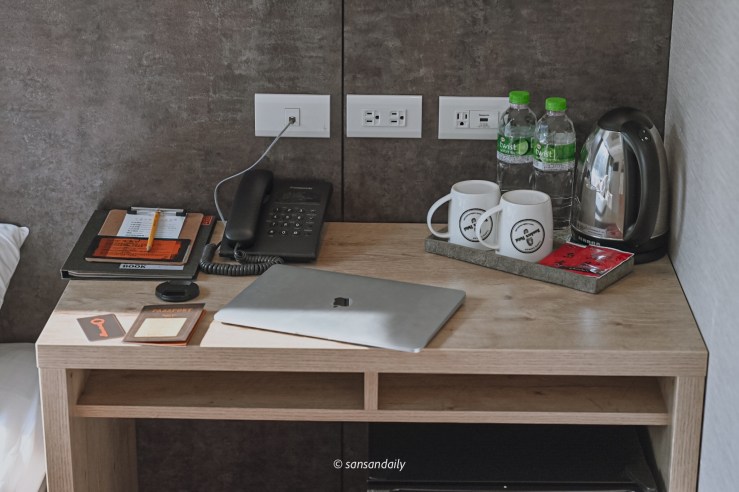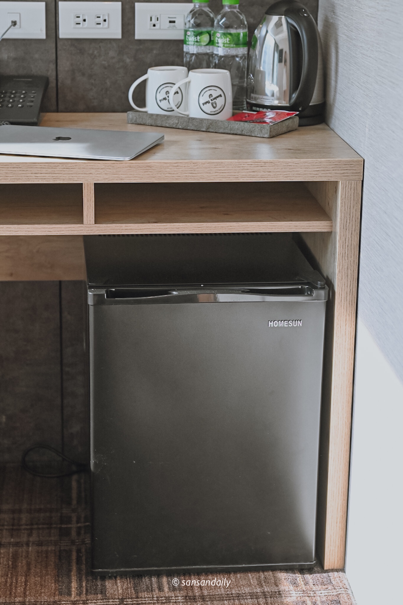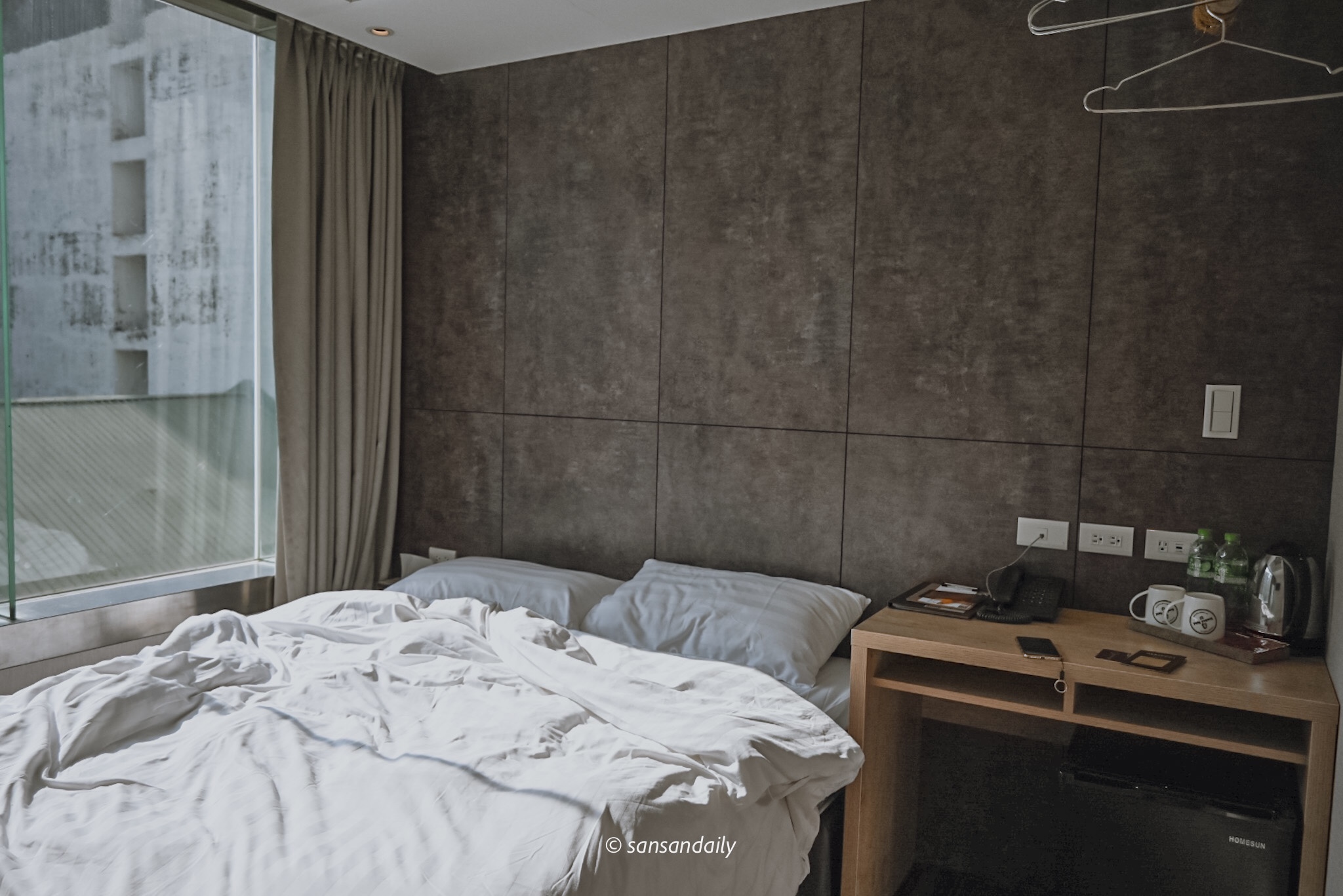 這次sansan入住的是【精緻雙人房】(高級雙人房)目前房價一晚約一千出頭,雖沒有提供早餐,但24小時交誼廳有提供免費的餅乾、泡麵、爆米花、沖泡茶飲等,皆為免費自取。