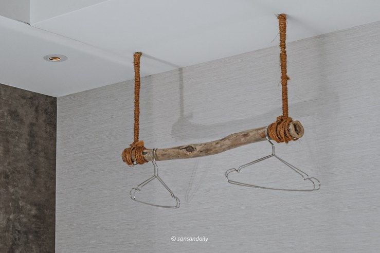 放內空間小巧但不壅擠,裝潢簡約的輕工業風,配上略有粗曠感的木製吊衣架,是我喜歡的風格。