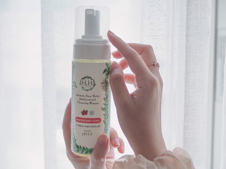 HH私密玫瑰純露抗菌潔淨慕斯,推出三款香氣,天然非人工香精,純粹淡雅,洗起來清爽沒有負擔。尤其sansan使用的這款「HH蔓越莓涼感慕斯」,除了有迷人的清新香氣外,還帶有不刺激的涼感,清洗當下會慢慢感受到淡淡的涼感透出,不會太過於刺激,洗完澡真的非常舒爽!