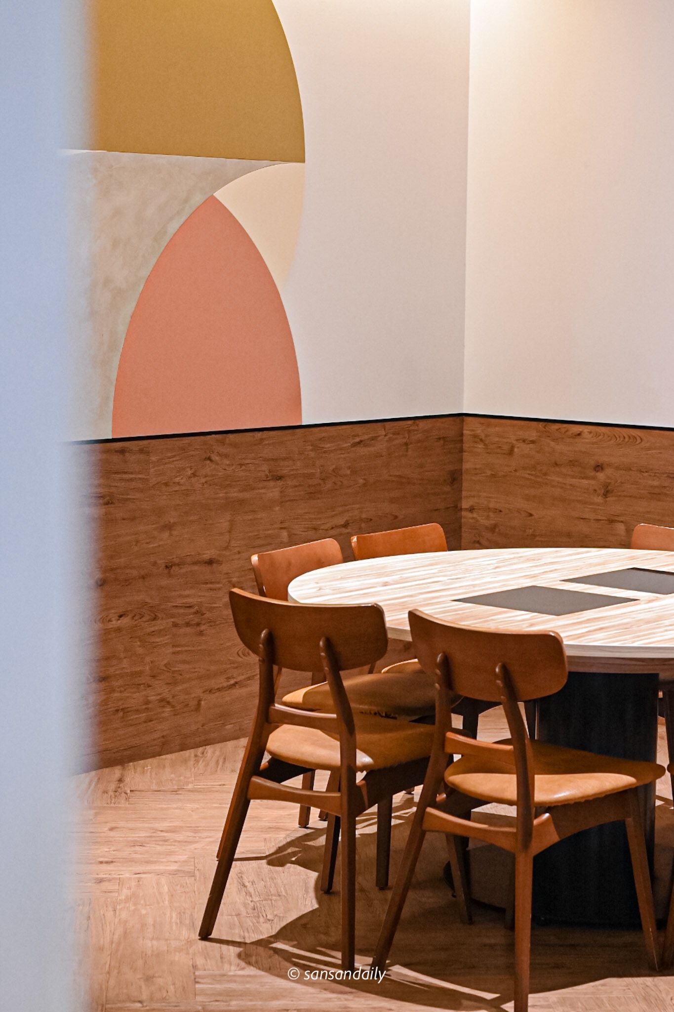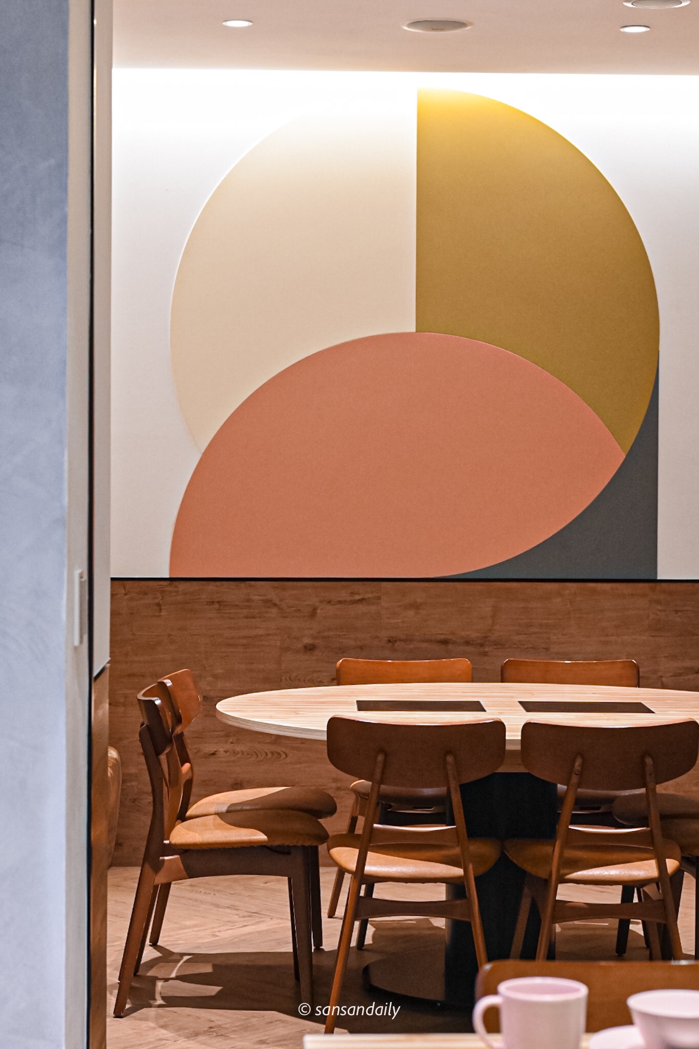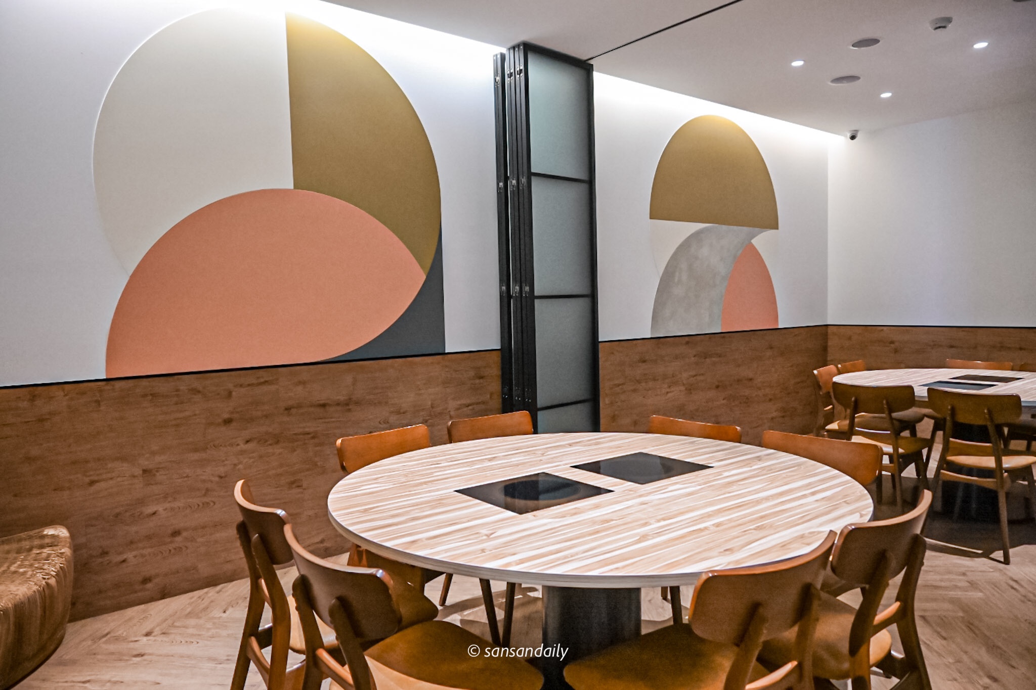 包廂內部空間寬敞舒適,大器的牆面圖樣設計、木質暖色系的傢俱,落落大方的氛圍,商業聚餐相當體面。
