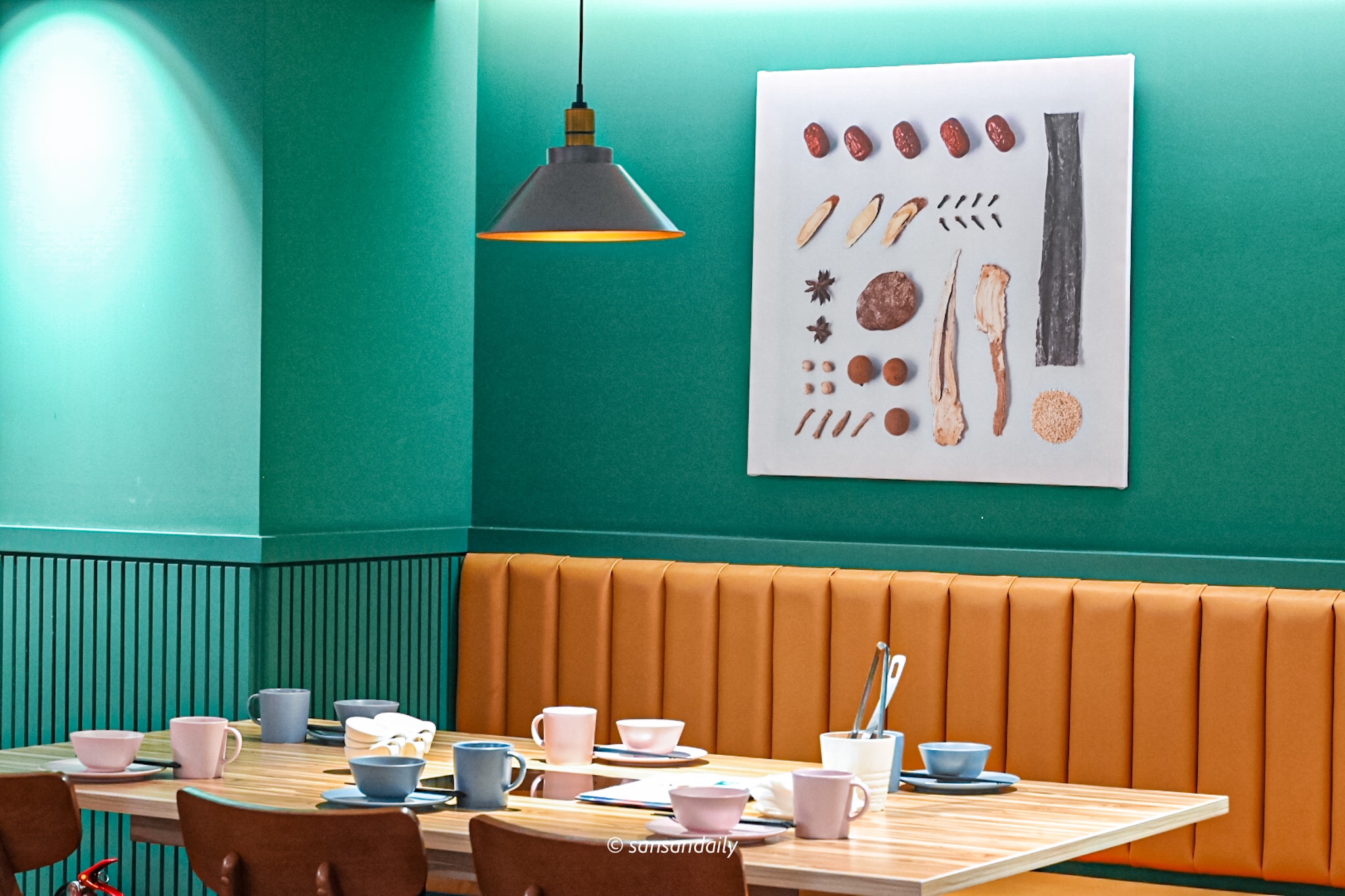 牆壁上掛著湯頭裡的食材,天然無添加、健康無負擔。