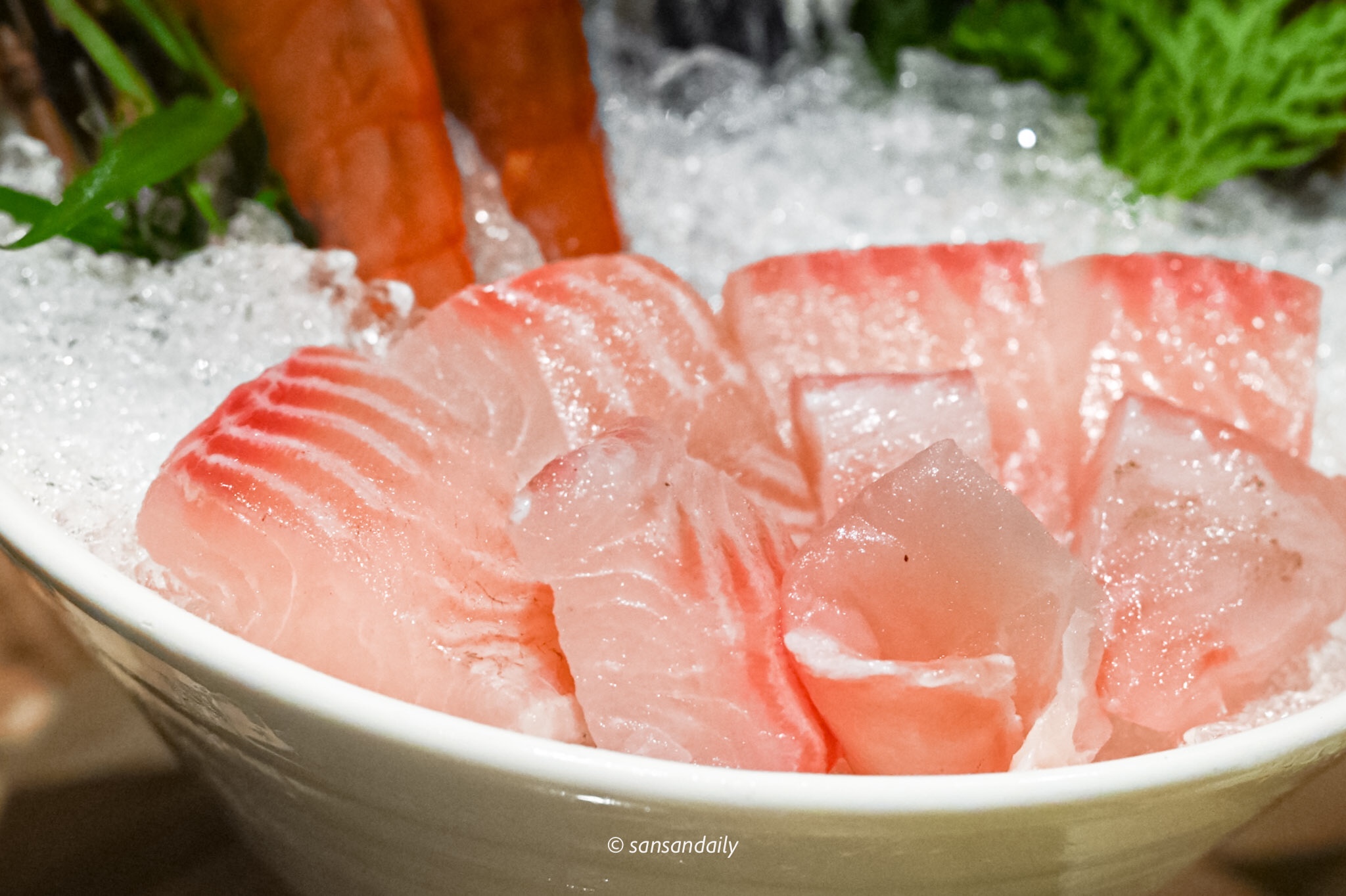 我們選了「天使紅蝦 2隻」$158 和「生食級鯛魚 120g」$198
