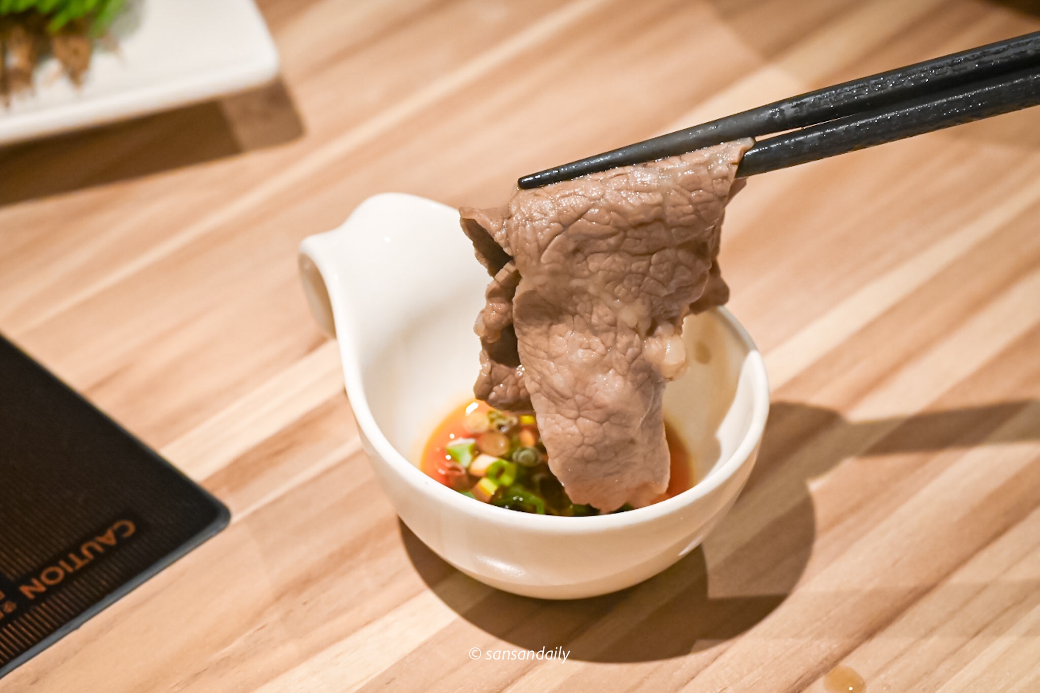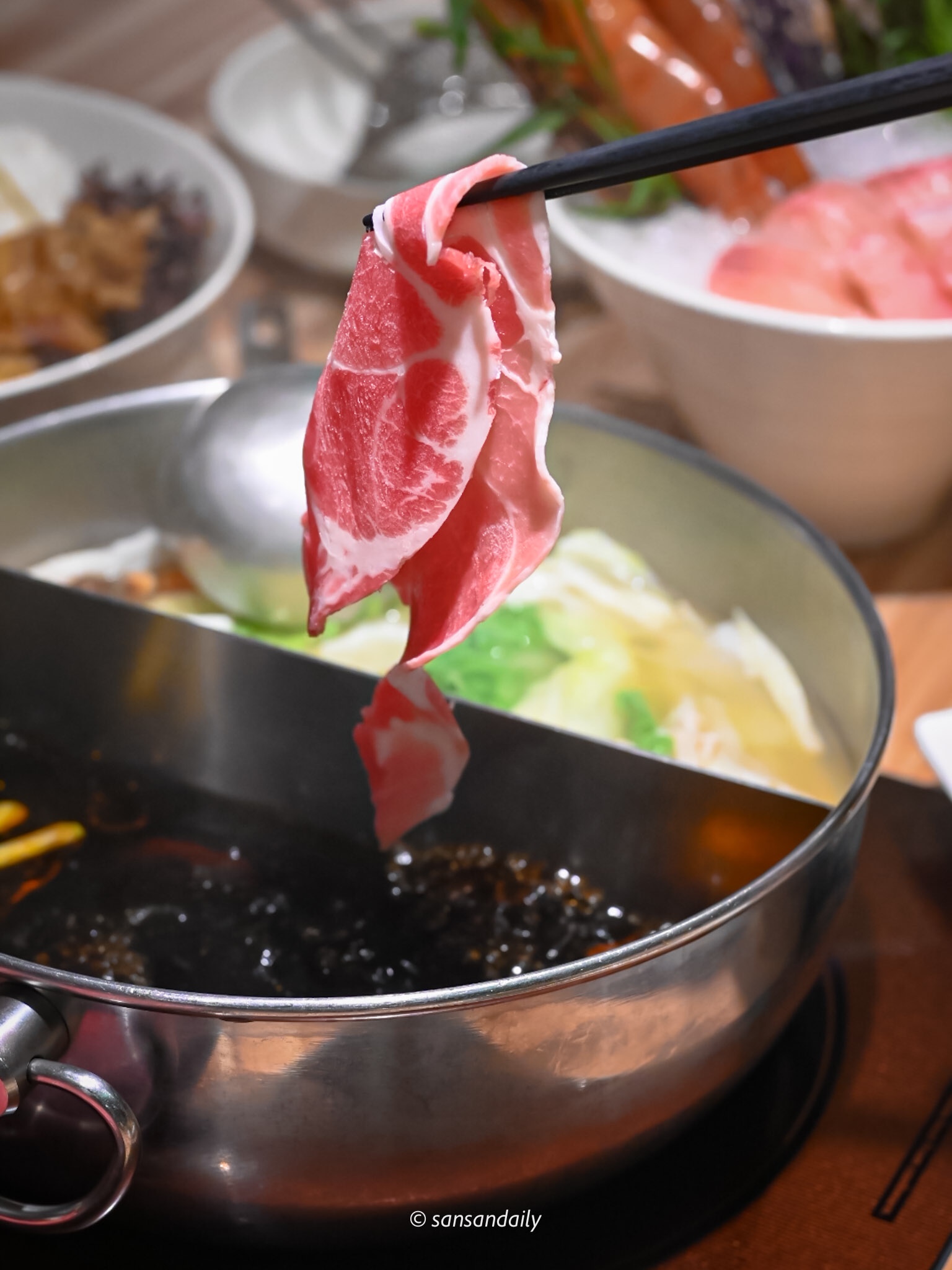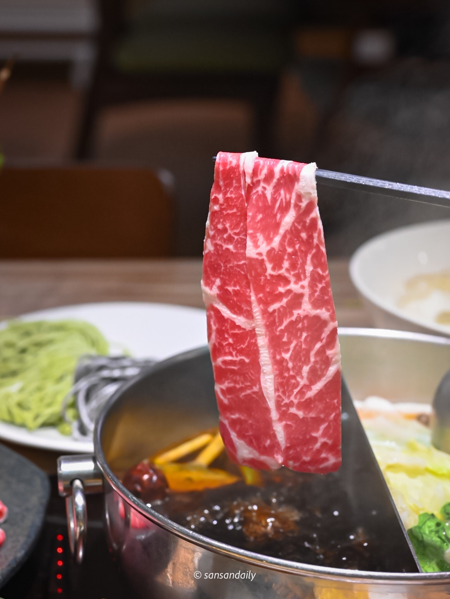 涮至5分熟,口感柔嫩、多汁,清甜的湯頭完全不會流失鮮甜、濃郁的牛肉鮮味,吃起來特別滿足,就是喜歡這種吃得到「原汁肉味」的幸福感~