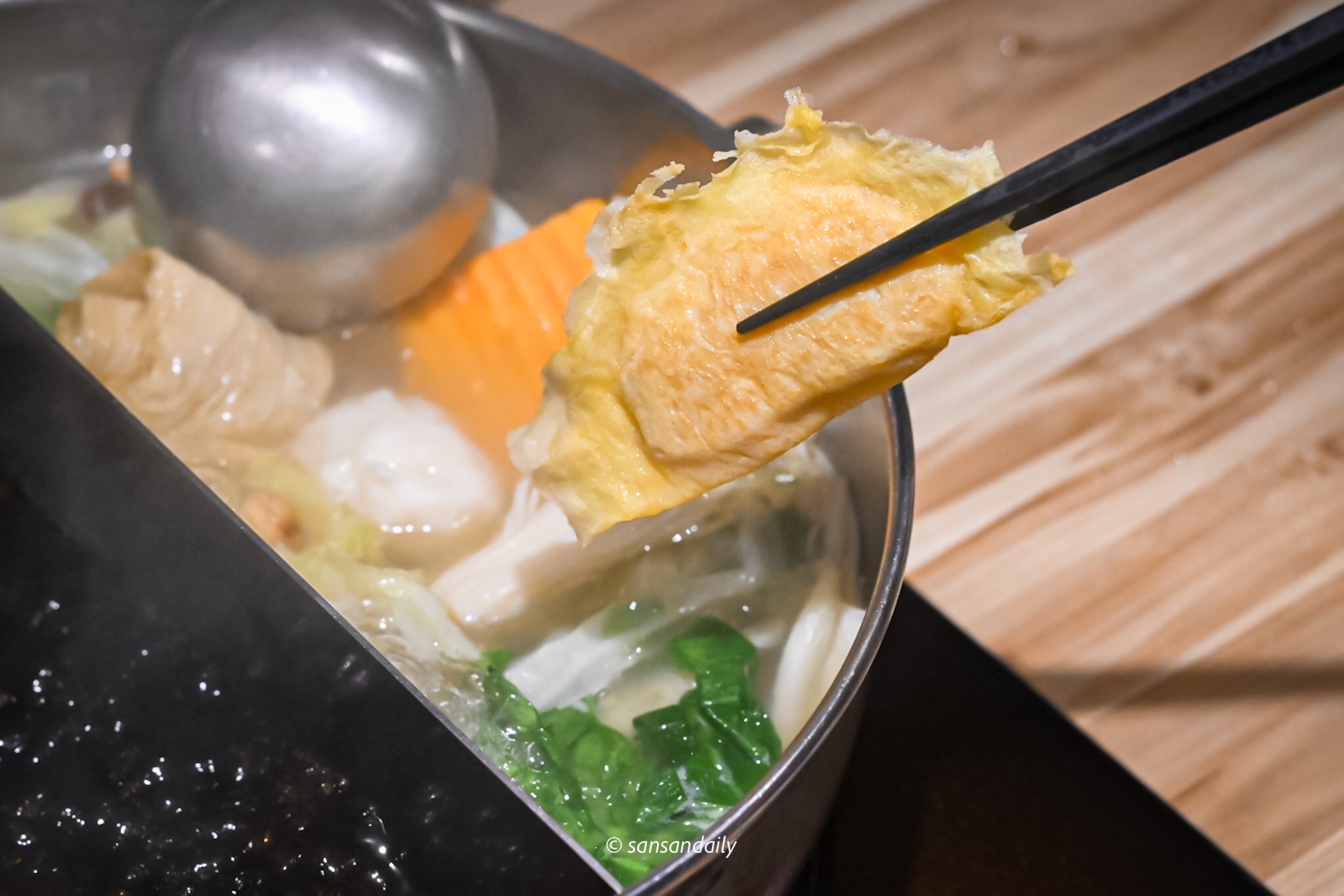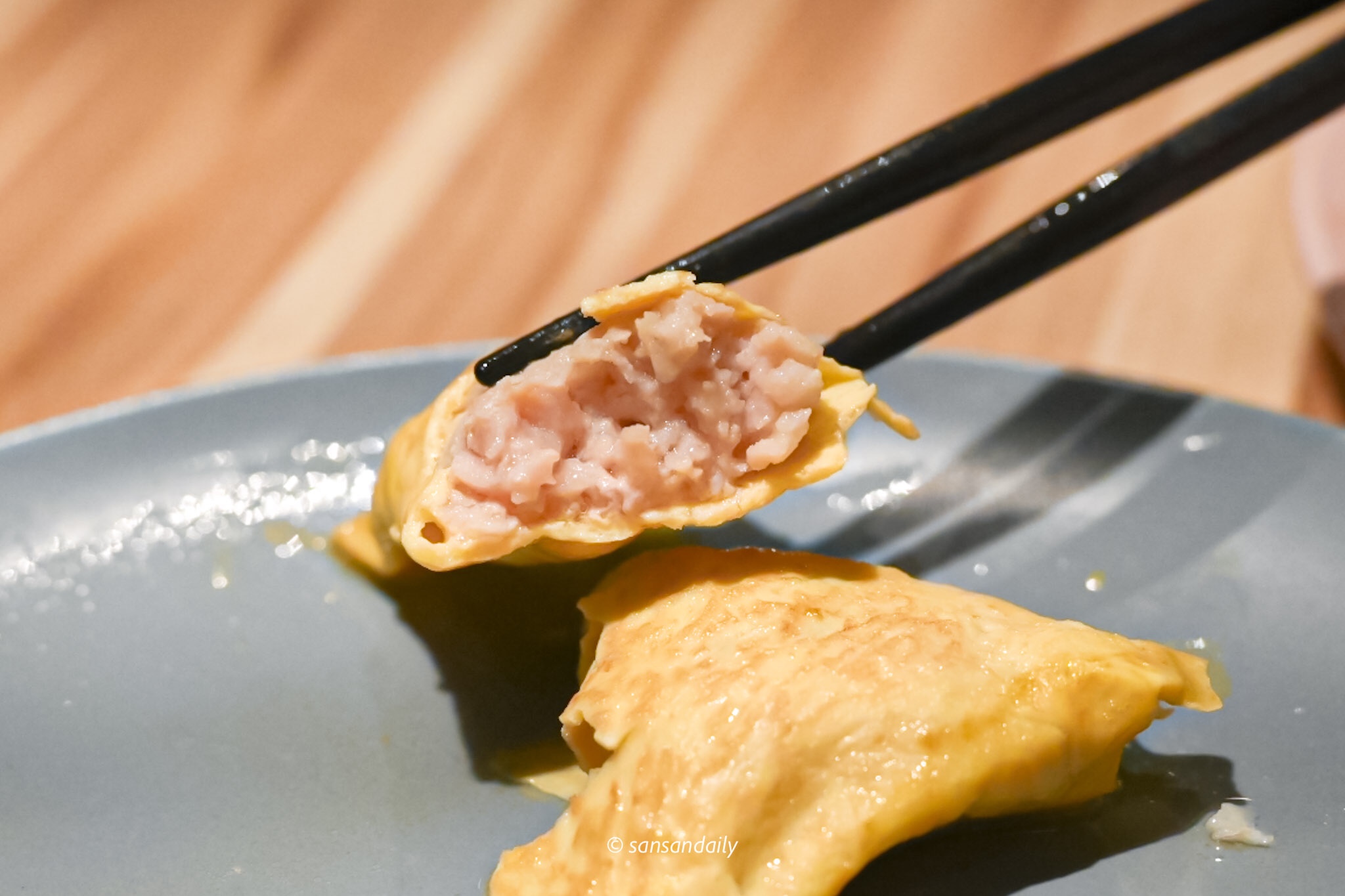 看看這個蛋餃的剖面,你就會明白啦!真的扎扎實實完全不馬乎,絕對是「汆食作伙鍋」最強必點單品!