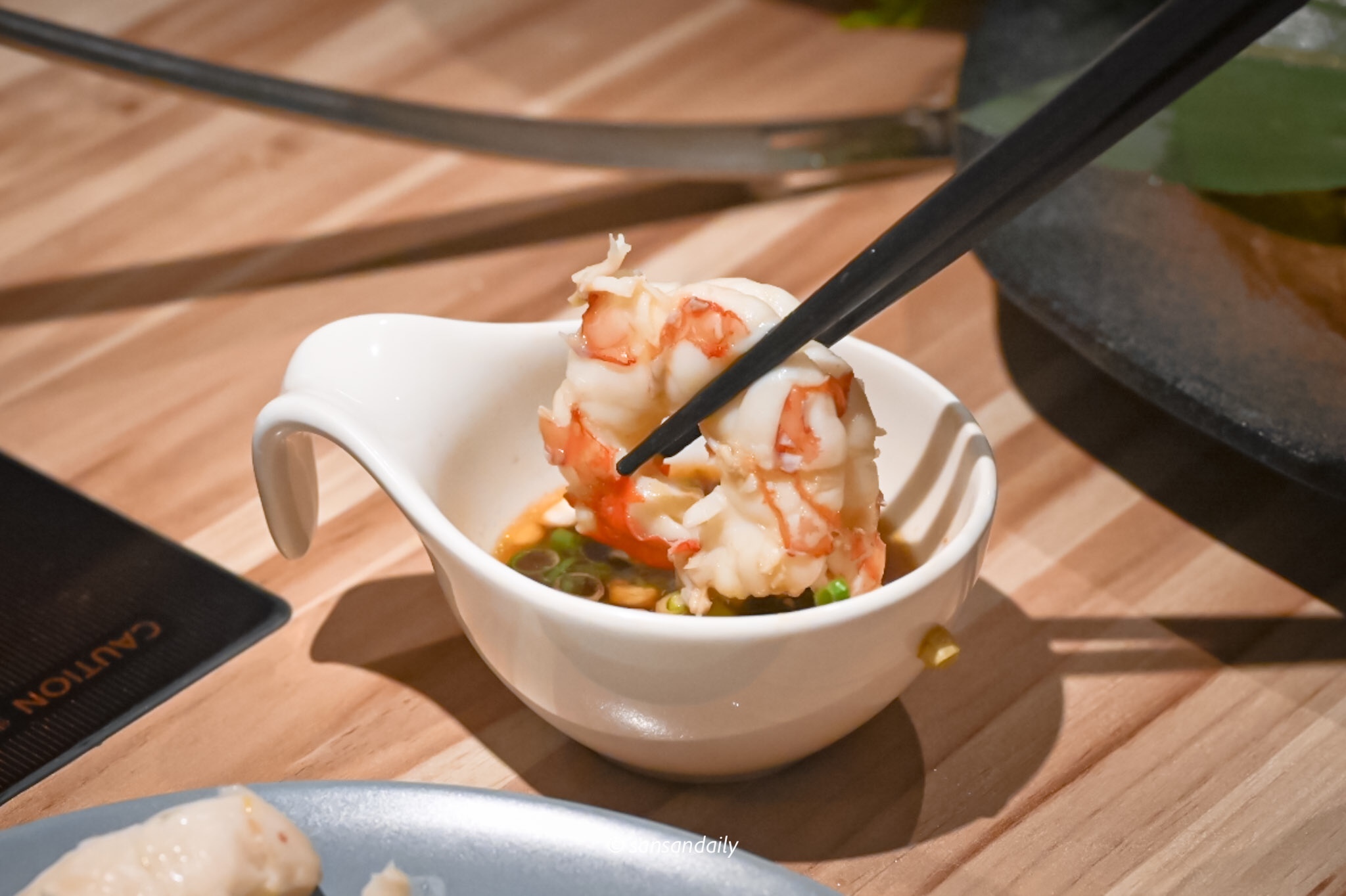 沾點「汆食作伙鍋」的汆辣醬就非常好吃,微微的辣口但很順,越吃越上癮。