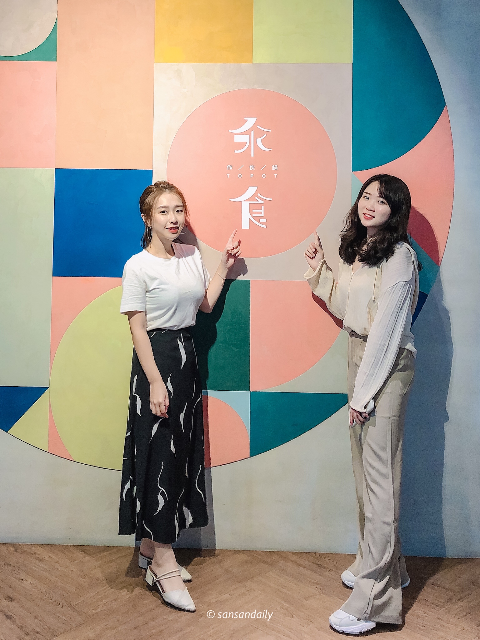 離開前,也和朋友在「汆食作伙鍋」的門口打卡牆留影。