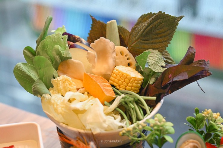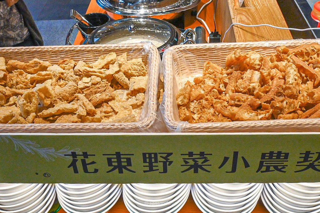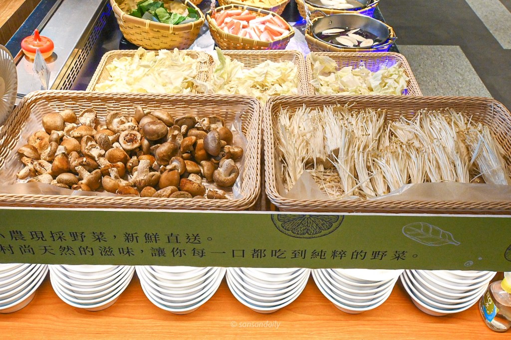 ▲也少不了基本菜盤裡會有的大白菜、高麗菜、青江菜、玉米、南瓜、水蓮等。其中比較特別的是蓮藕、帶皮玉米筍和茄子,蔬菜都很新鮮、品質相當好。不過這次來沒有看到芋頭(剛好我也不愛)哈哈