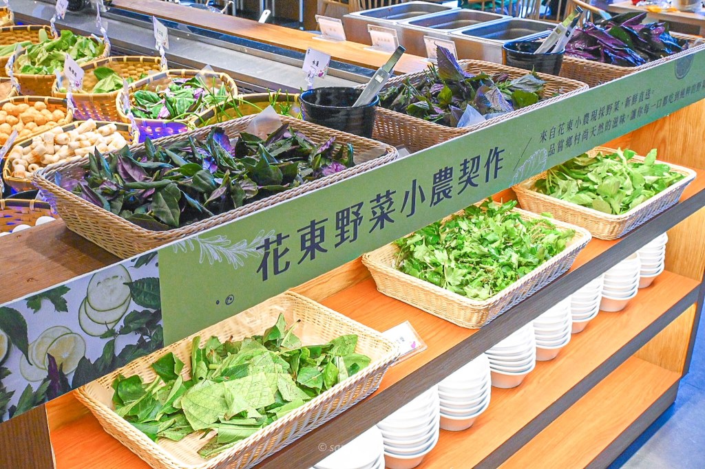▲ 夏部火鍋 最與眾不同的地方,就是放眼望去最普通卻最特別的整櫃新鮮野菜。夏部火鍋 與花東的在地小農契作,每天新鮮現採產地直送,提供我們在地、天然的農作好物,領會「最甜不過原味、最美不過自然」的美好滋味。