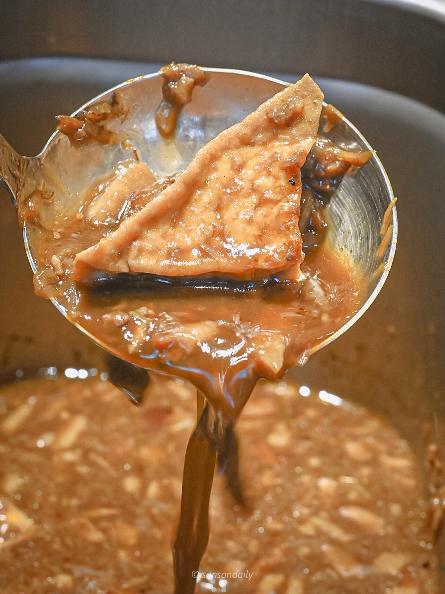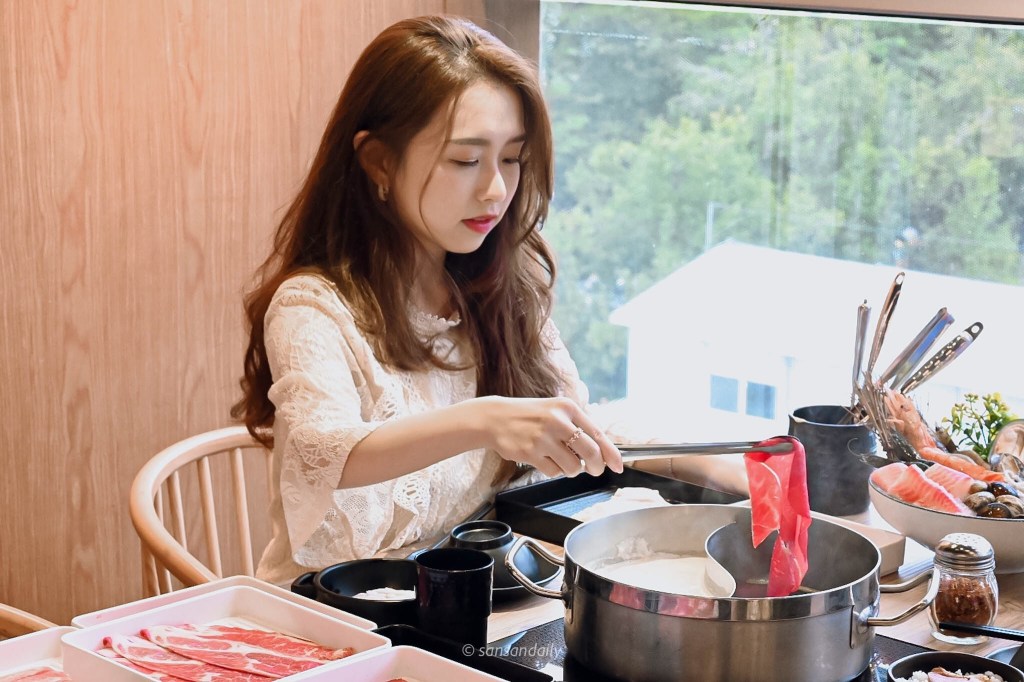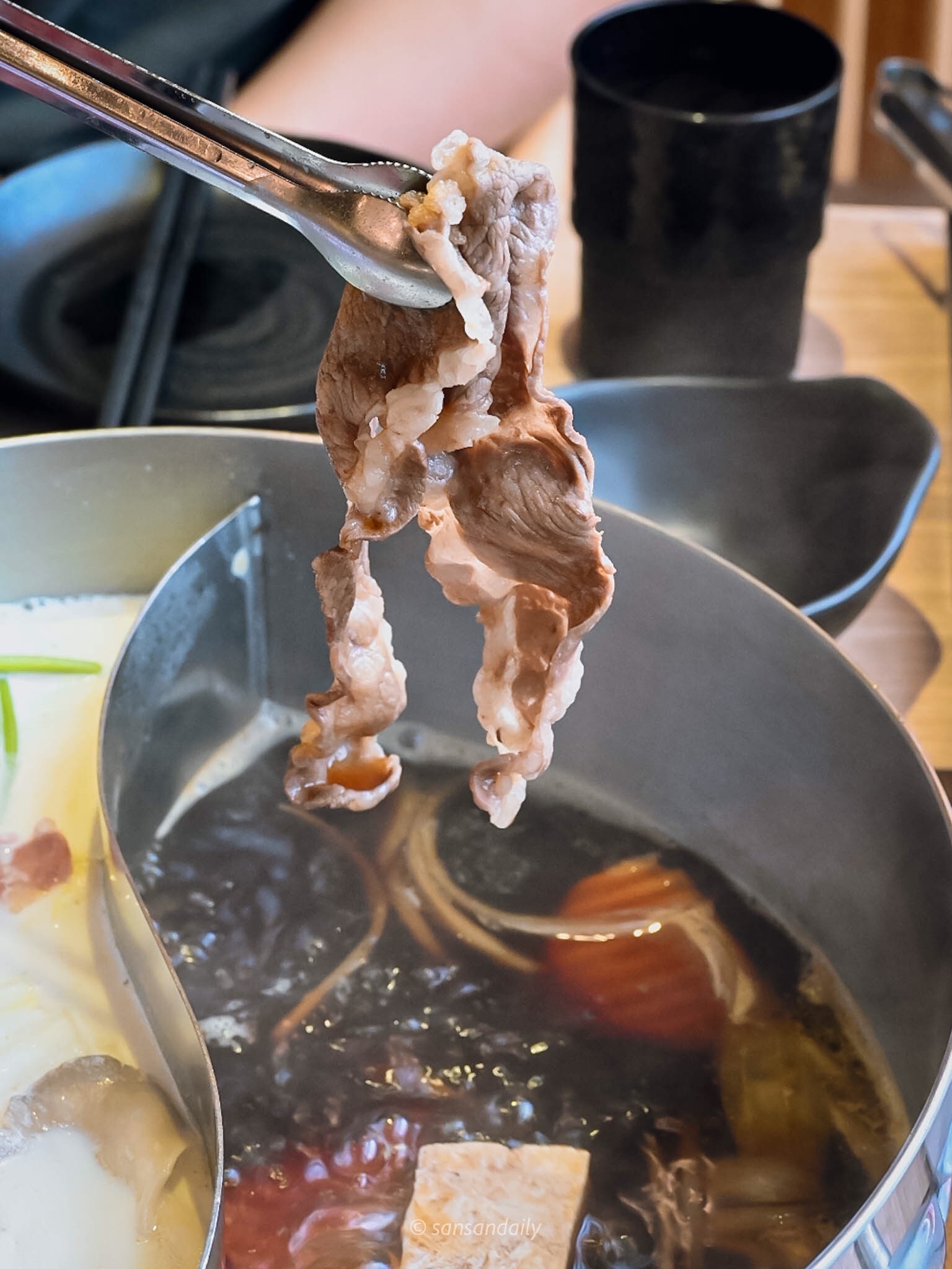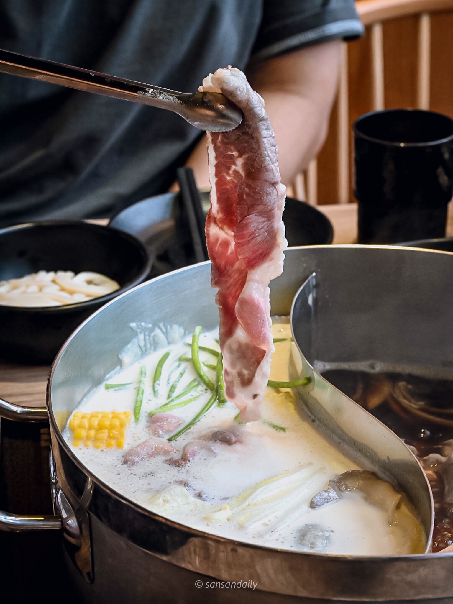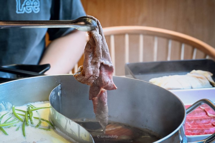 愛吃肉的sansan已經坐不住,迅速開始將肉片下鍋,不論是壽喜燒或是牛奶鍋,煮肉類都非常適合!